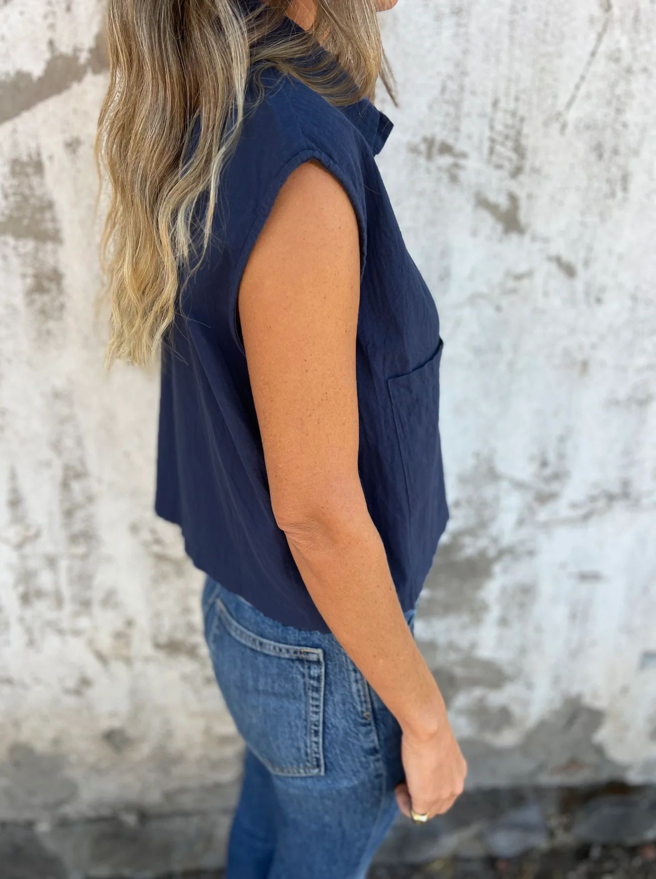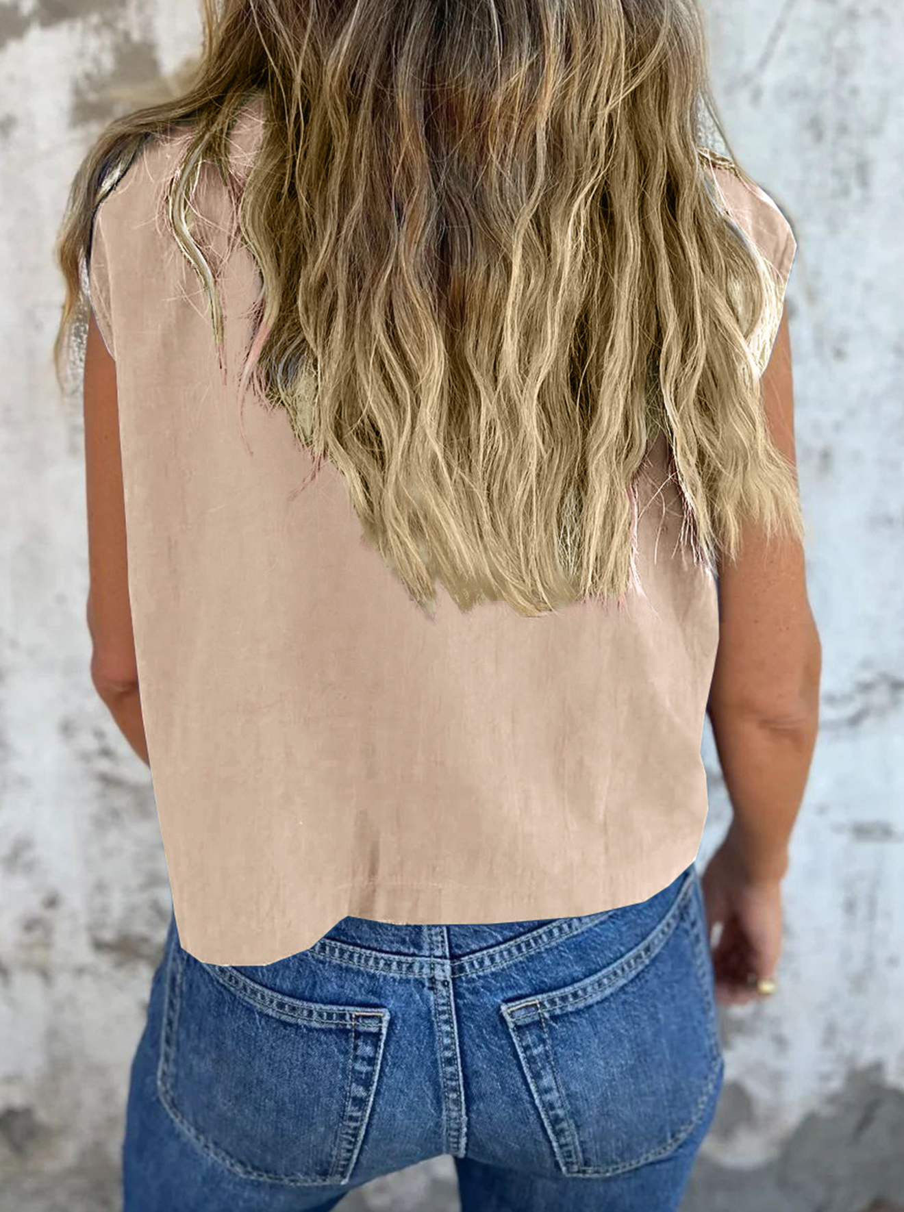 Full Size Button Down Cap Sleeve Linen Shirt Plus Size
