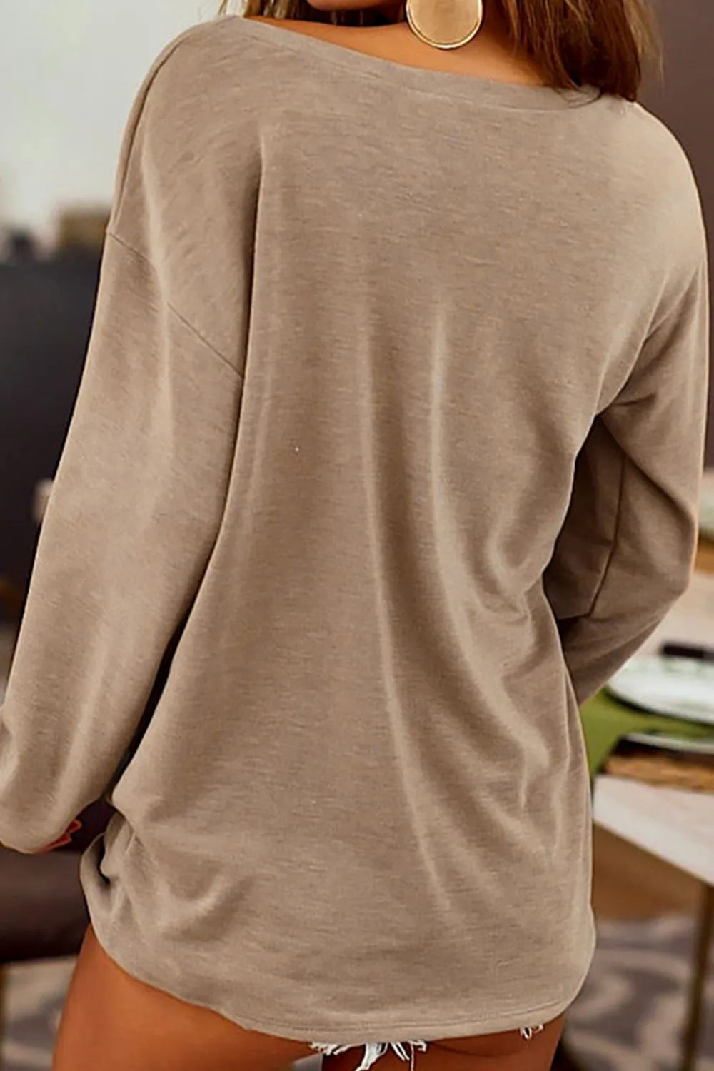 Distressed Pocketed Round Neck Long Sleeve T-Shirt