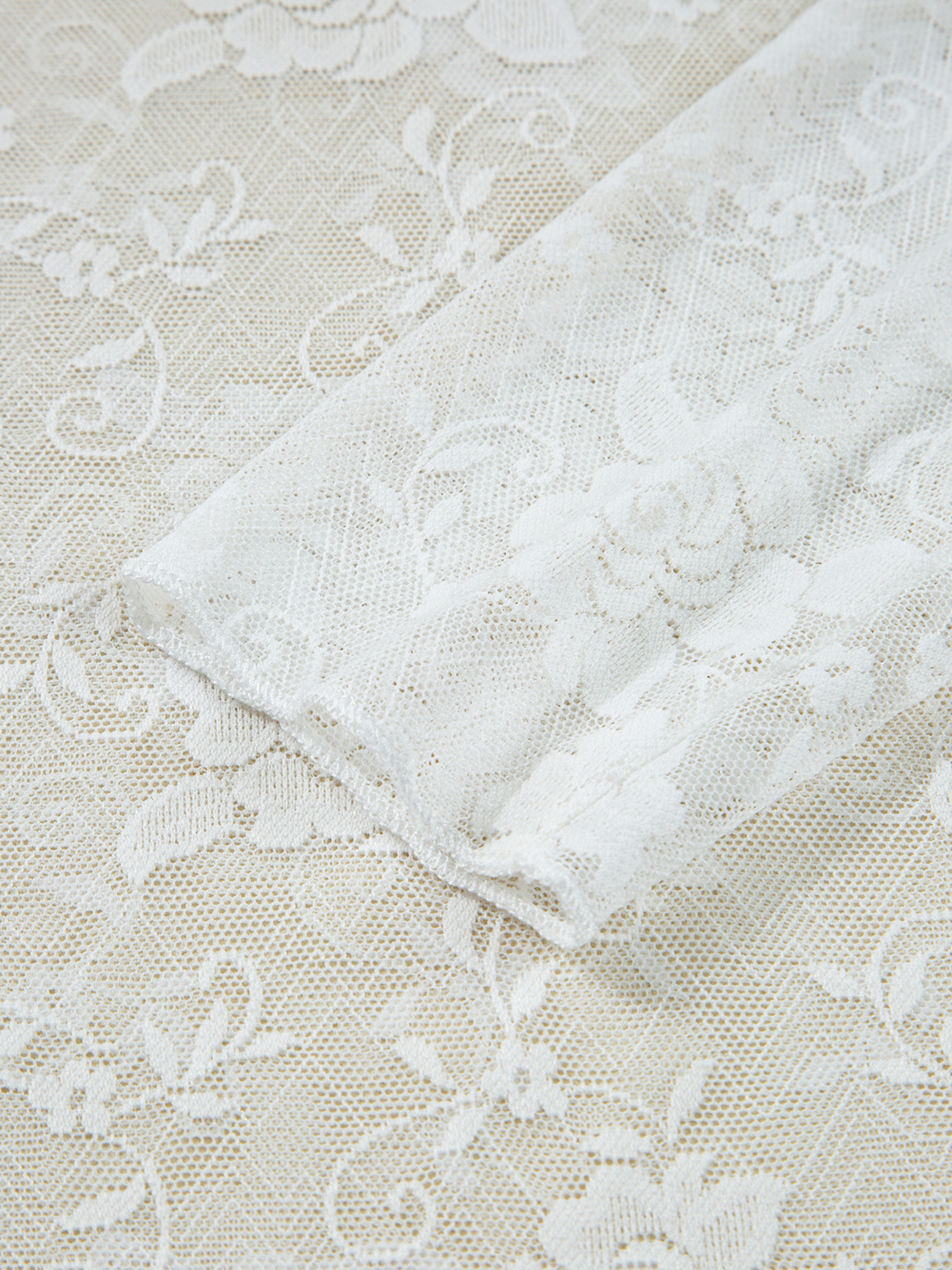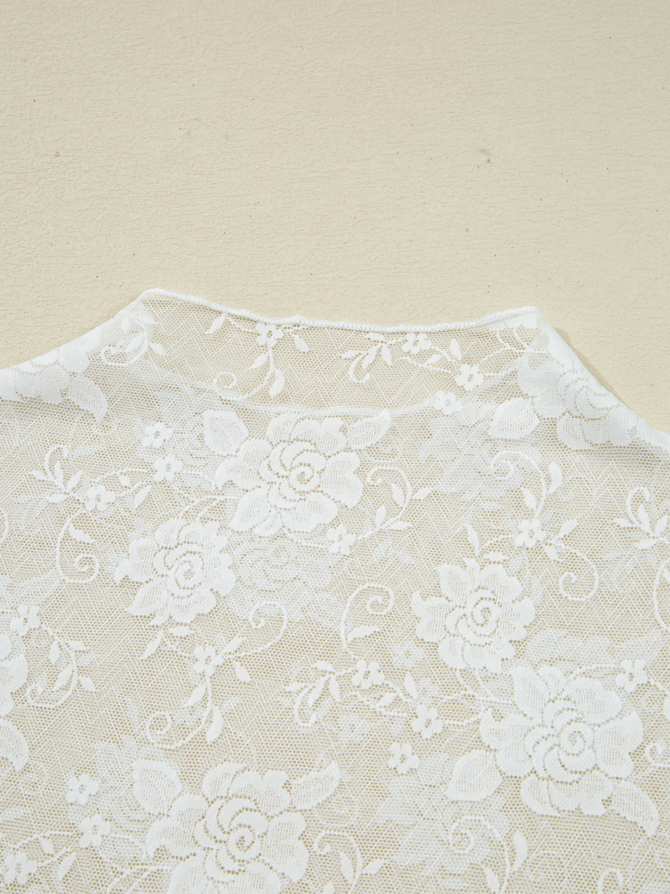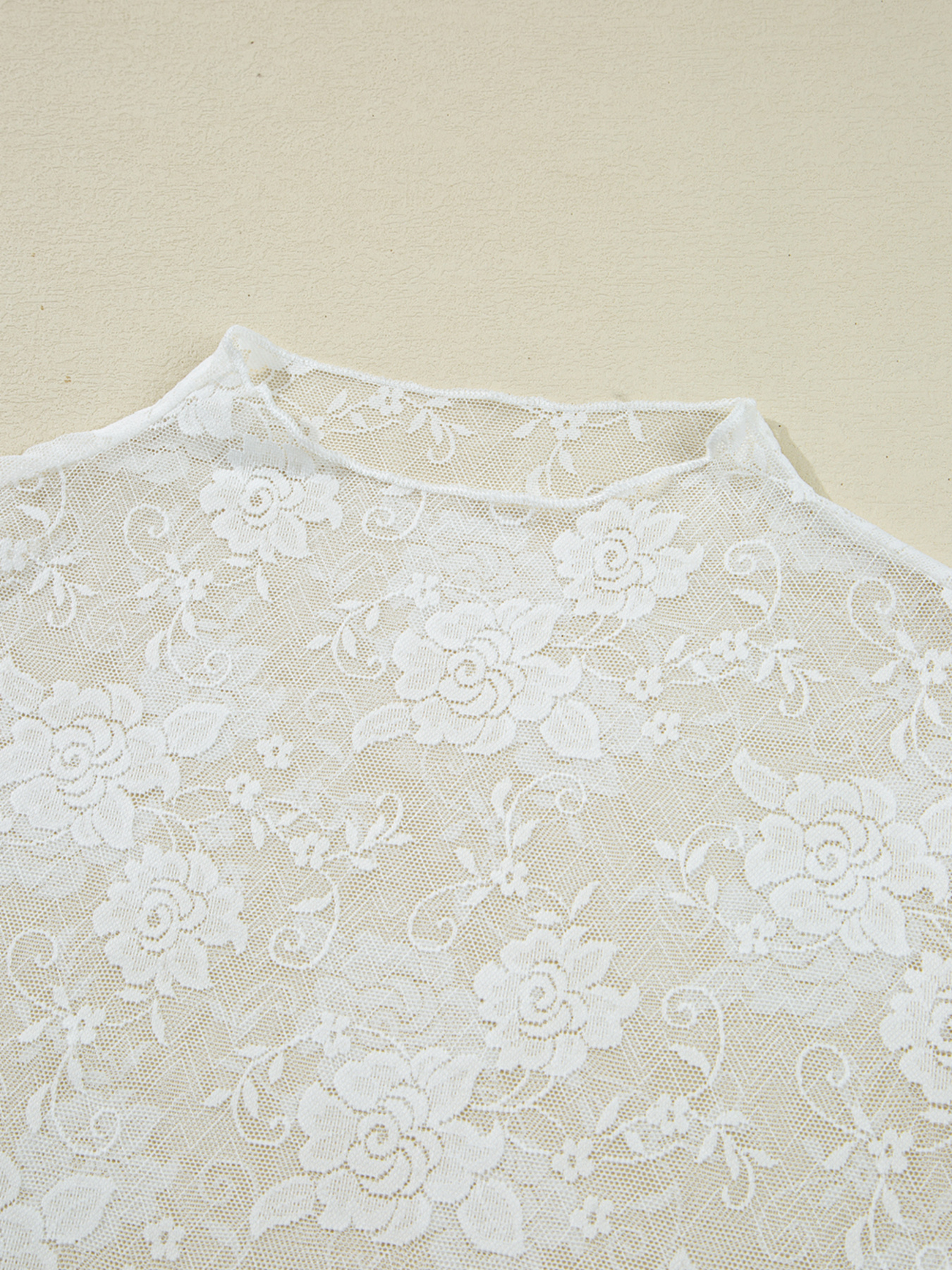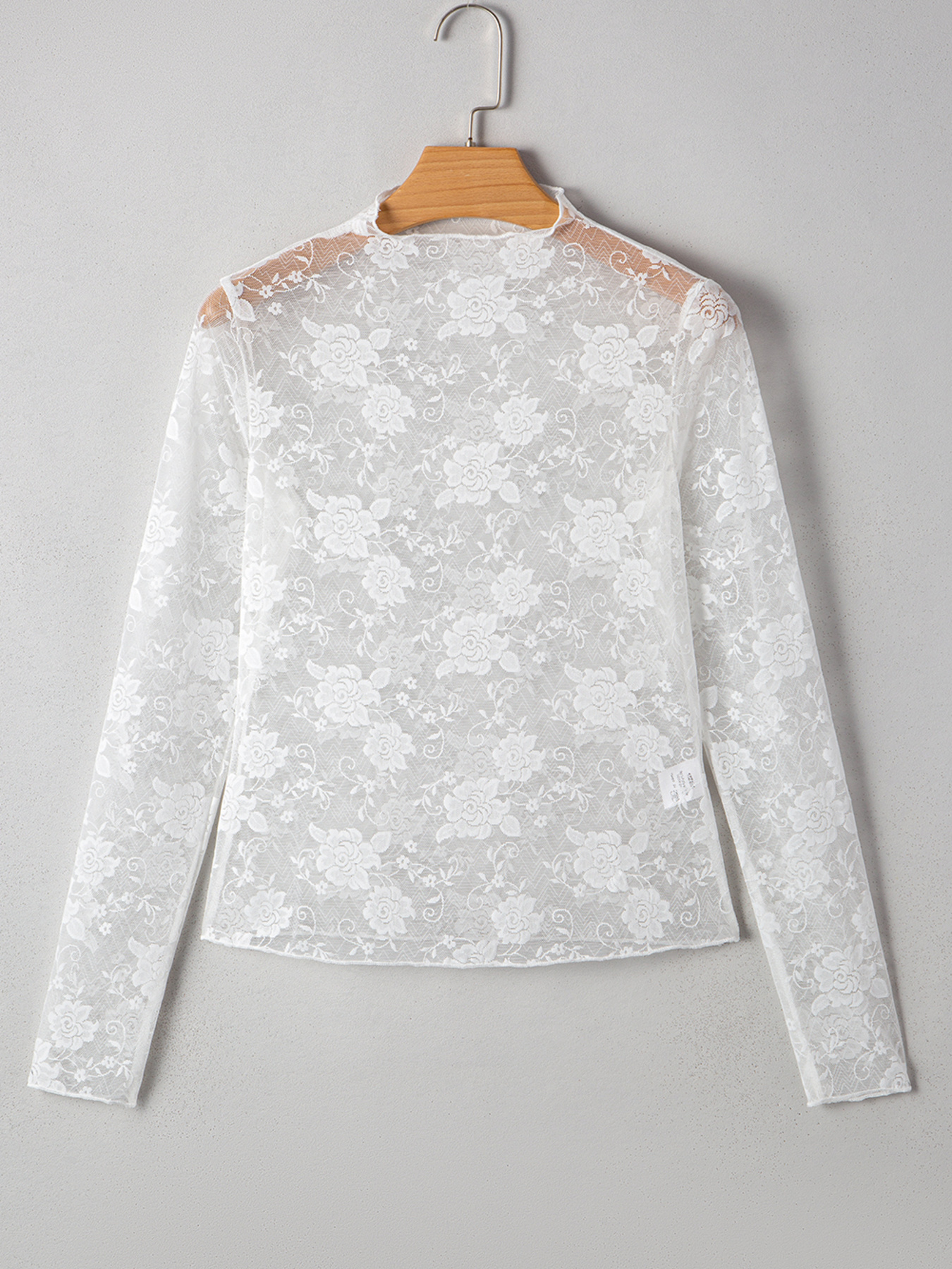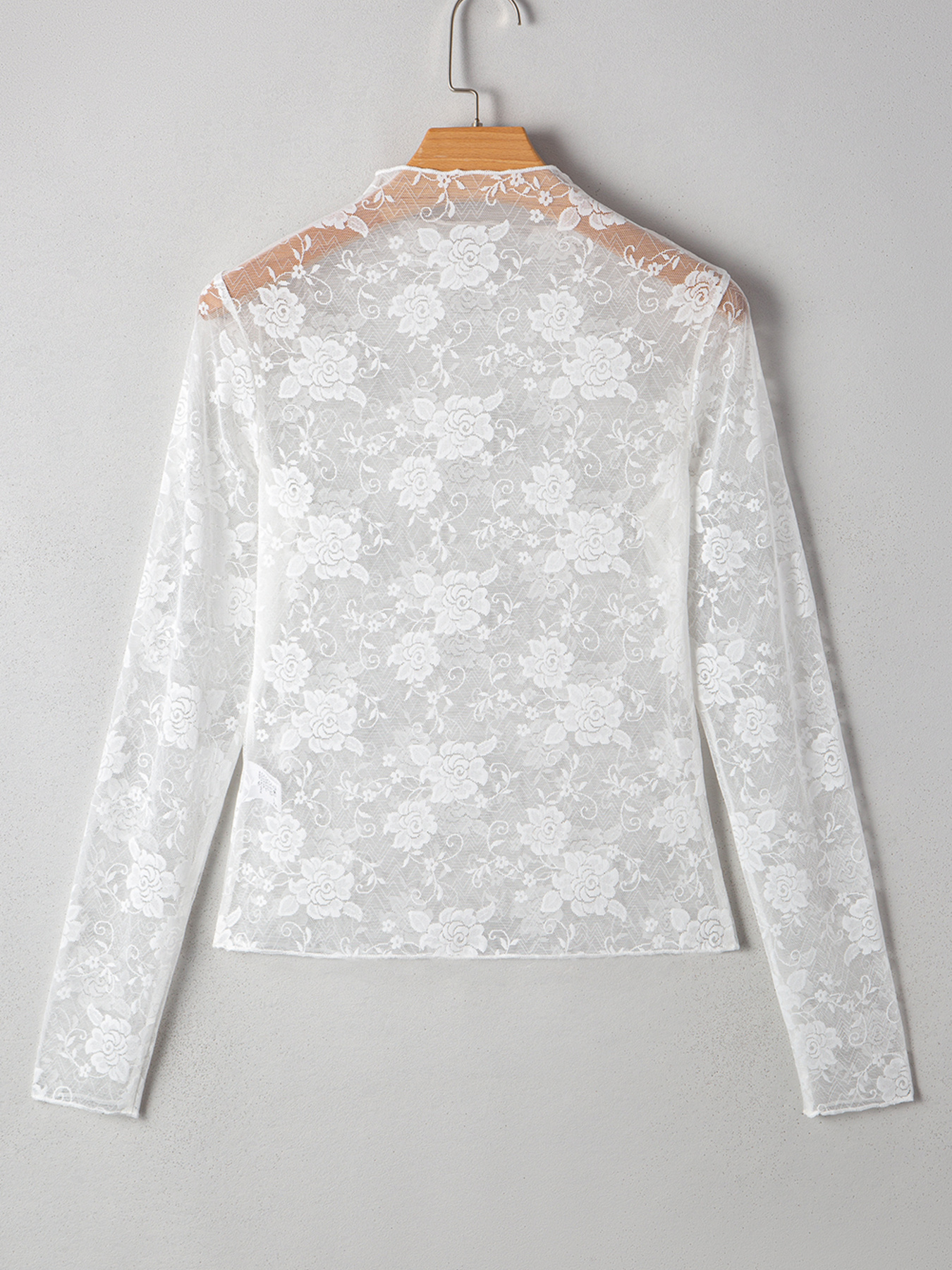 Sheer Floral Lace Mesh Mock Neck Long Sleeve Top