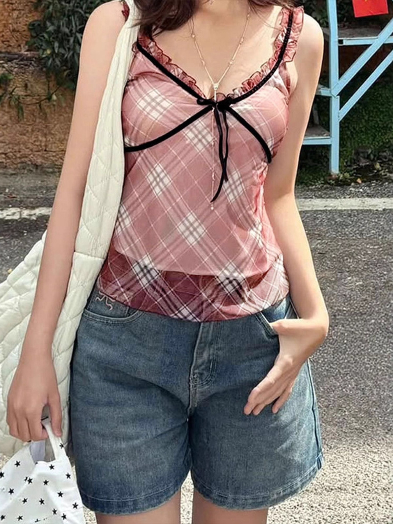 Plaid Ruffle Trim Cami