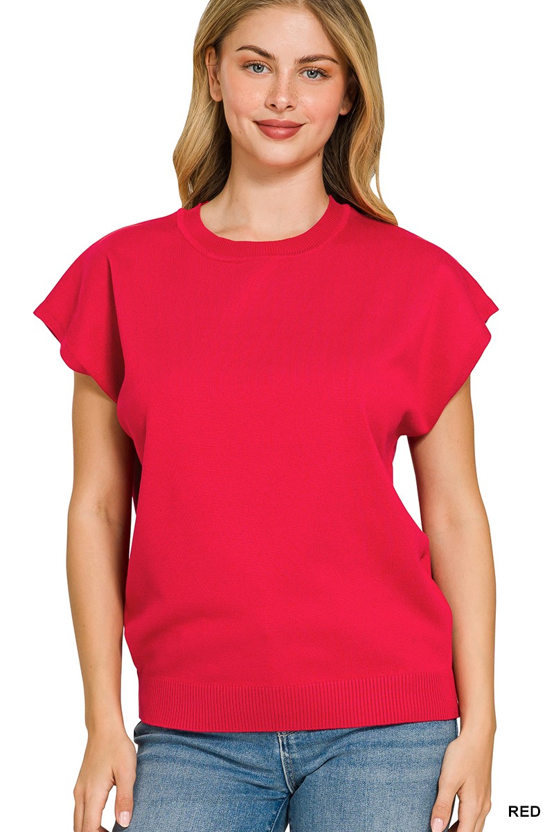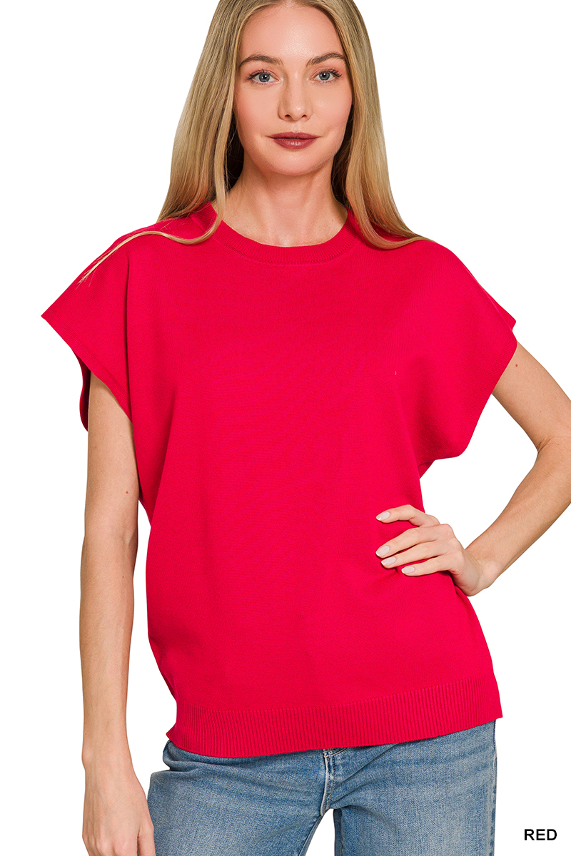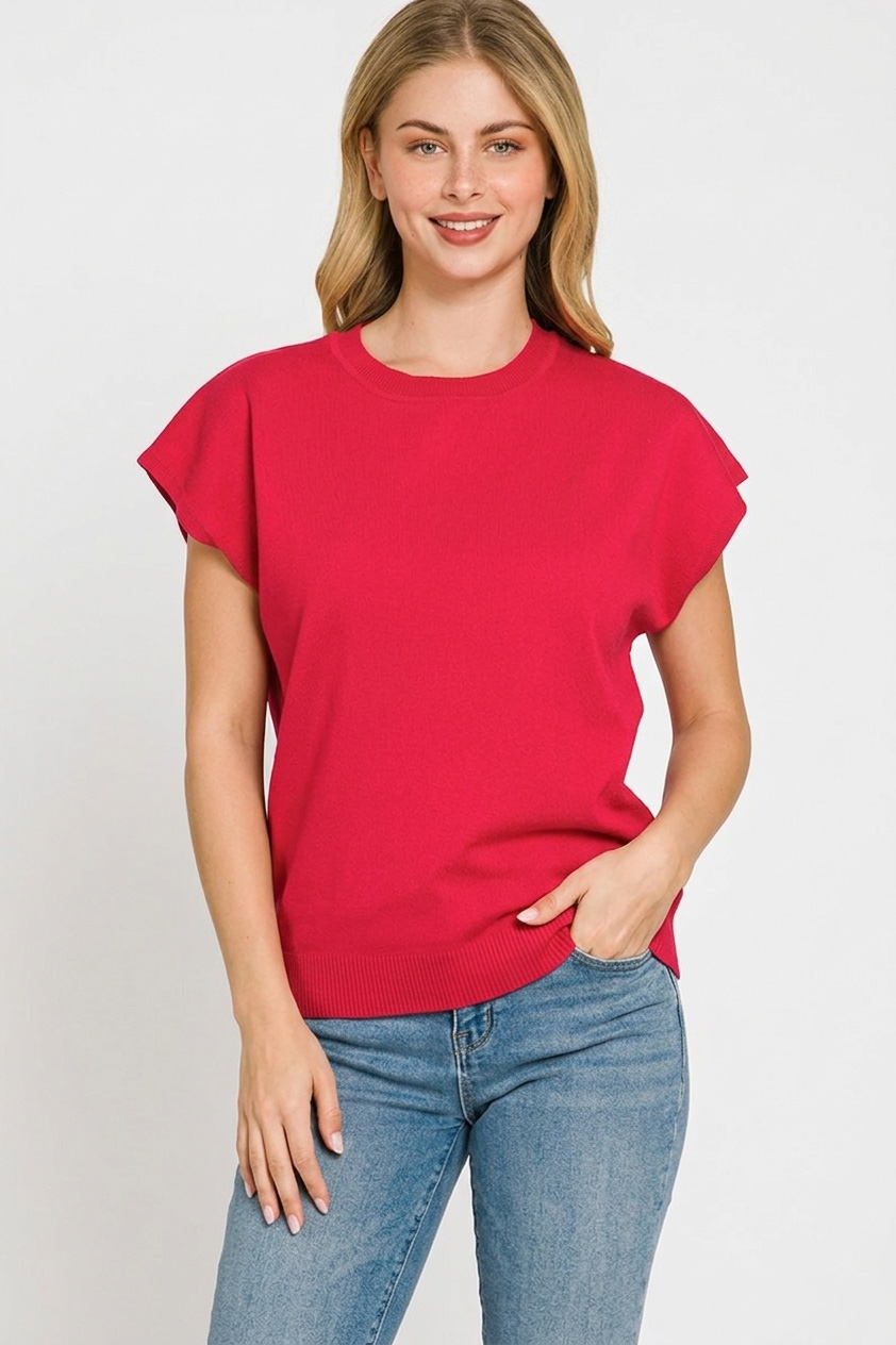 Zenana Viscose Round-Neck Short Sleeve Sweater