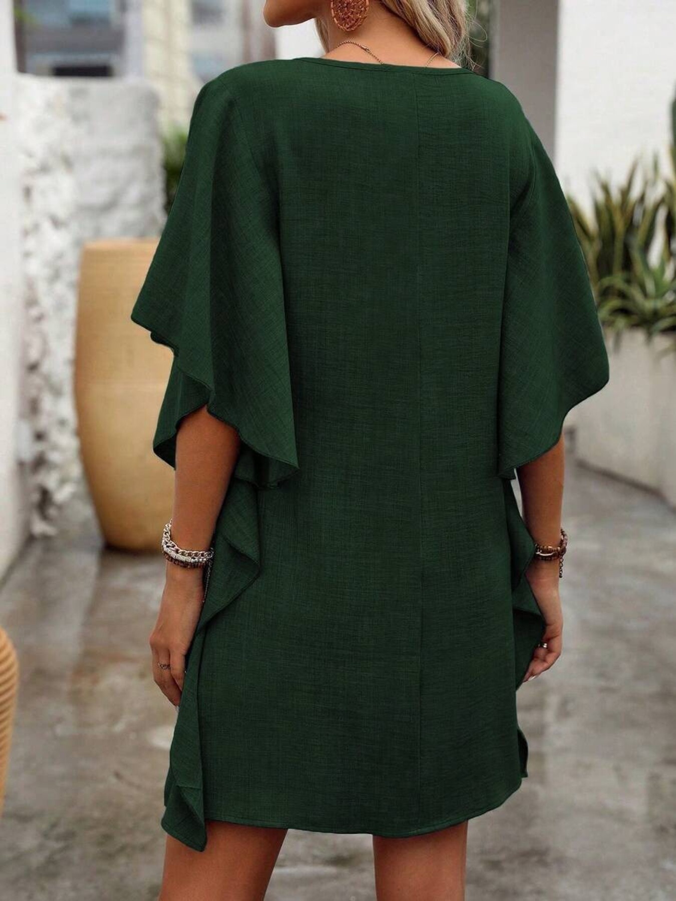 Ruffled Flutter Sleeve V-Neck Mini Dress