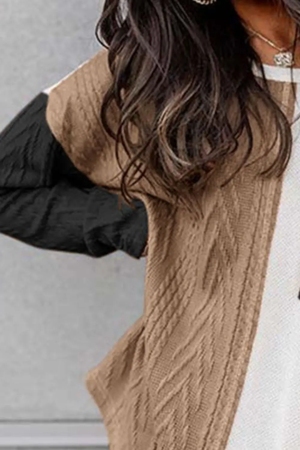 Full Size Color Block Cable-Knit Tops