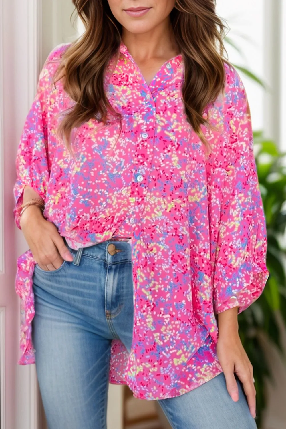 Printed Collared Neck Button Up Shirt