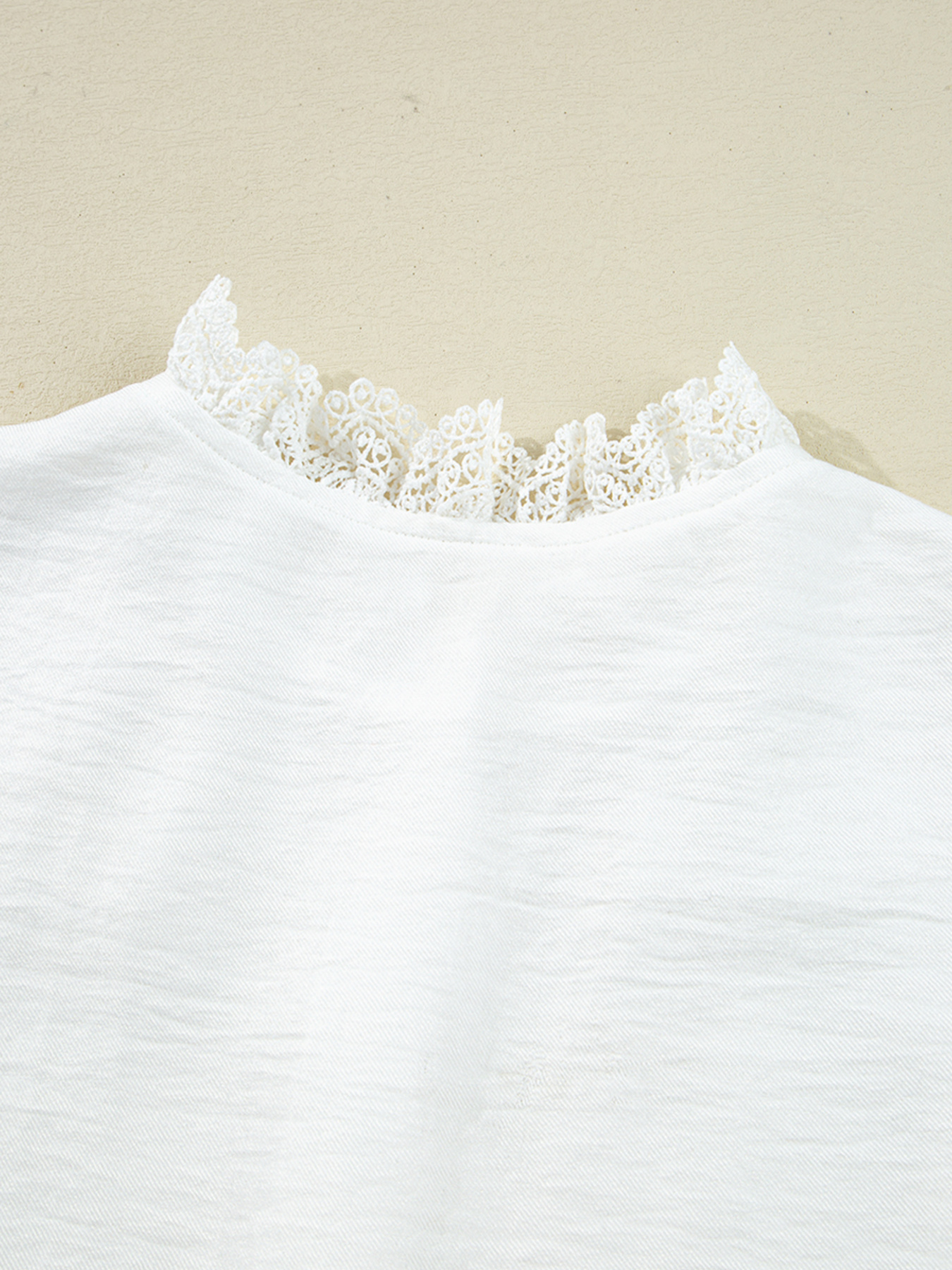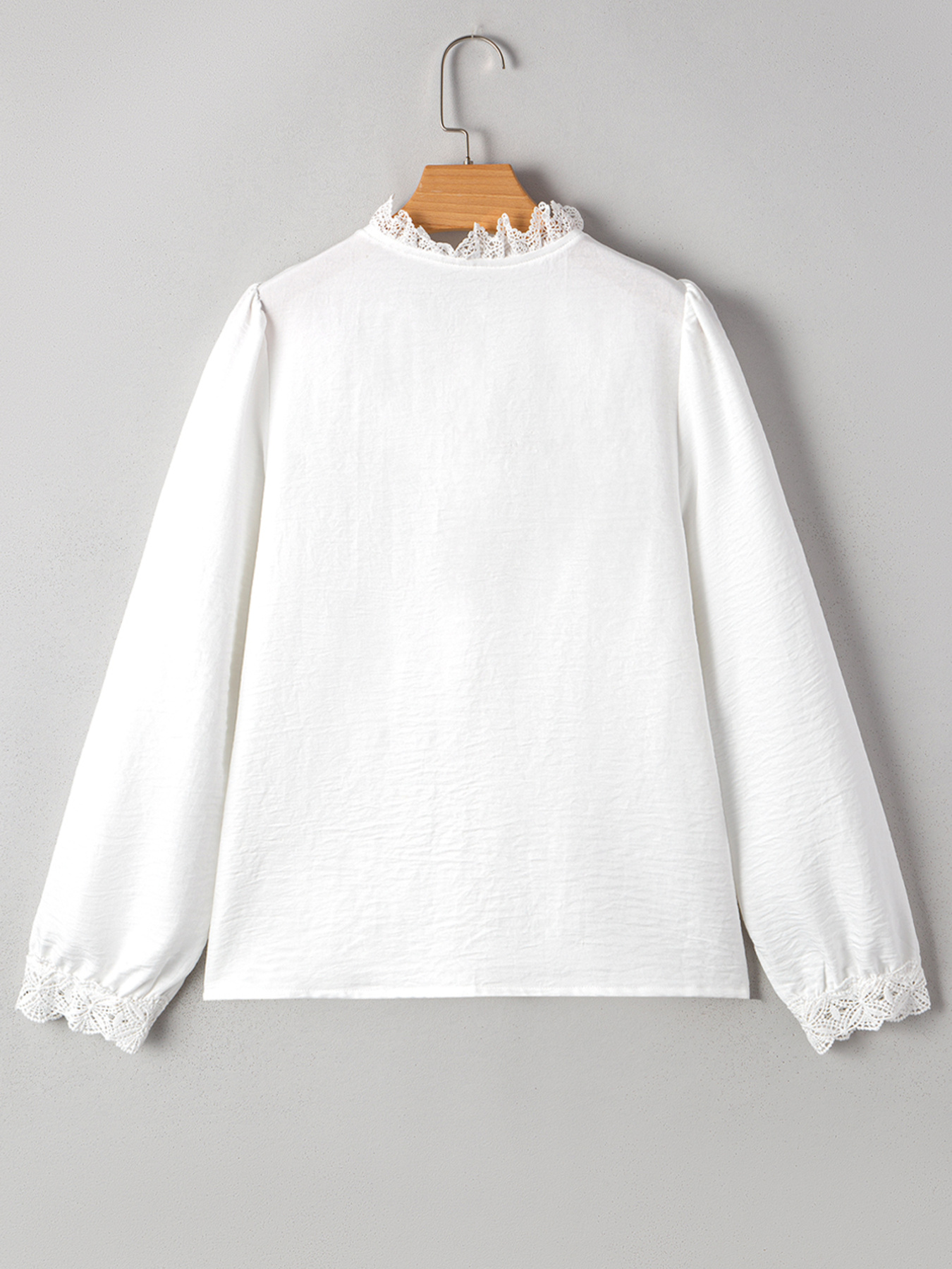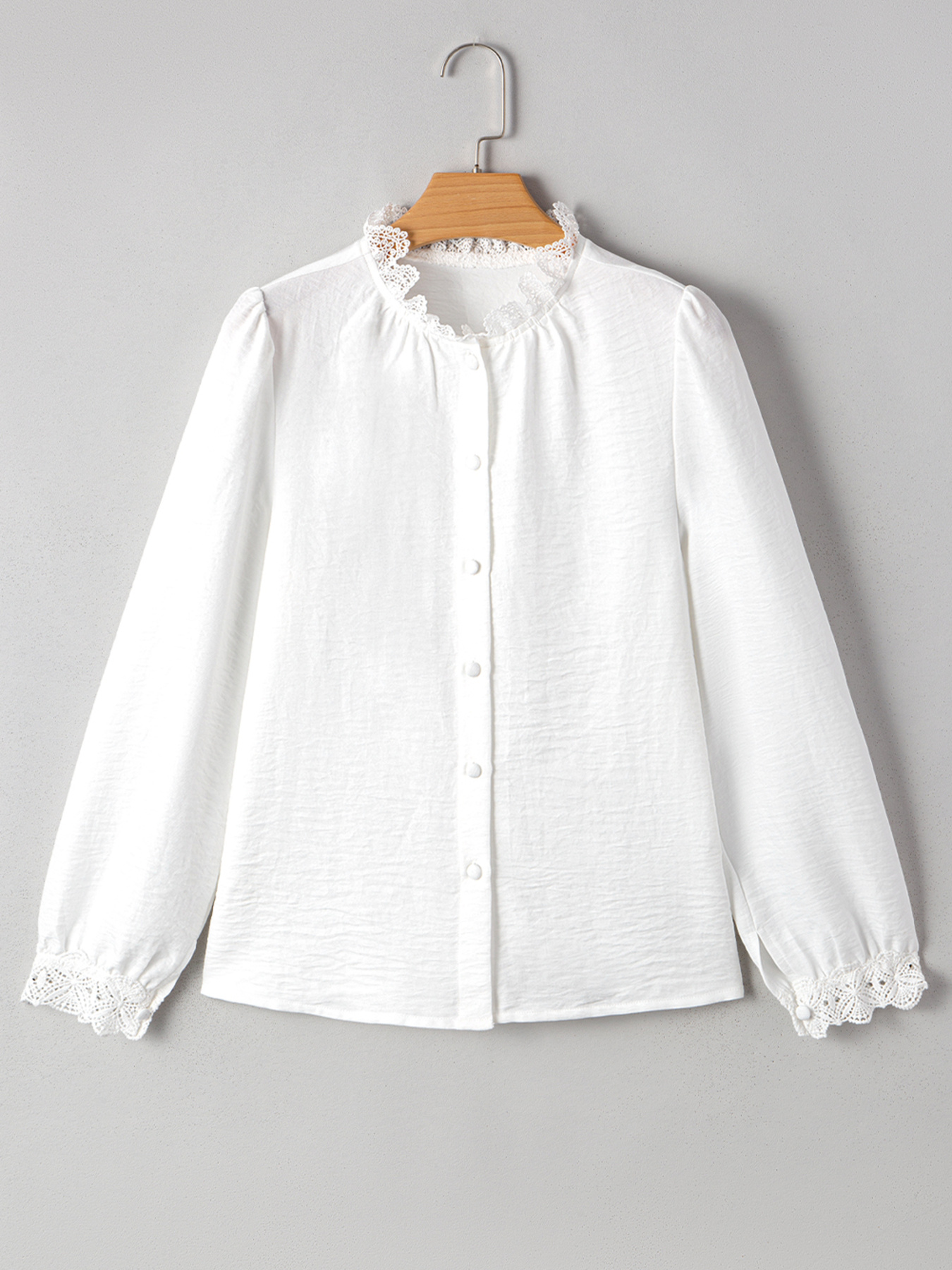 Lace Patchwork Buttoned Stand Neck Loose Shirt