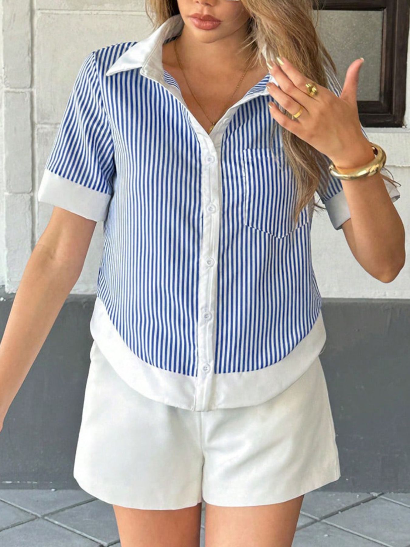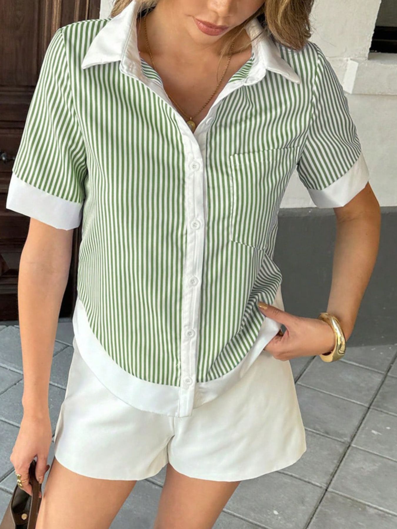 Striped Button-Down Short Sleeve Shirt