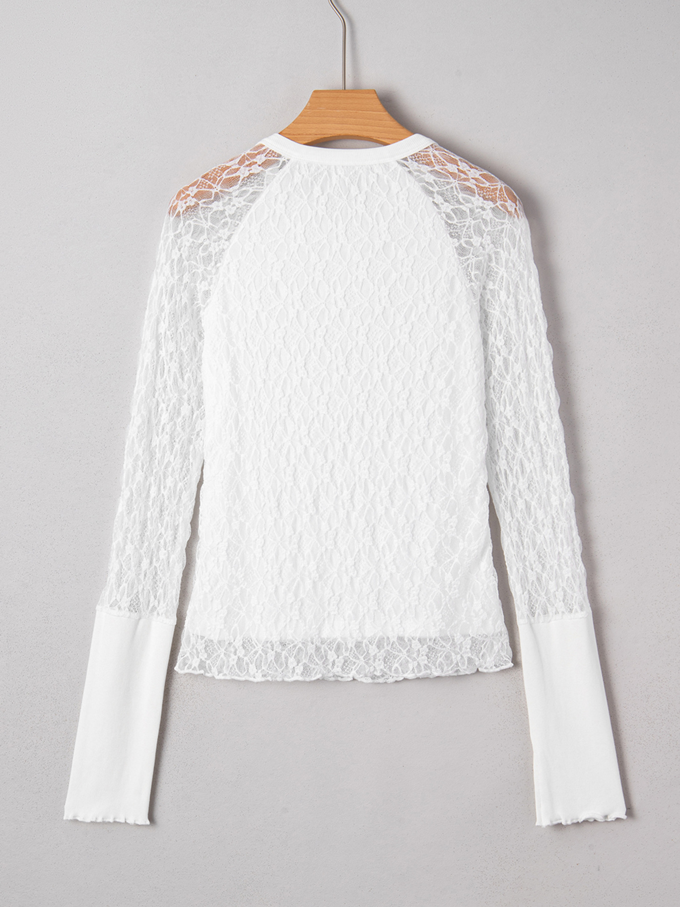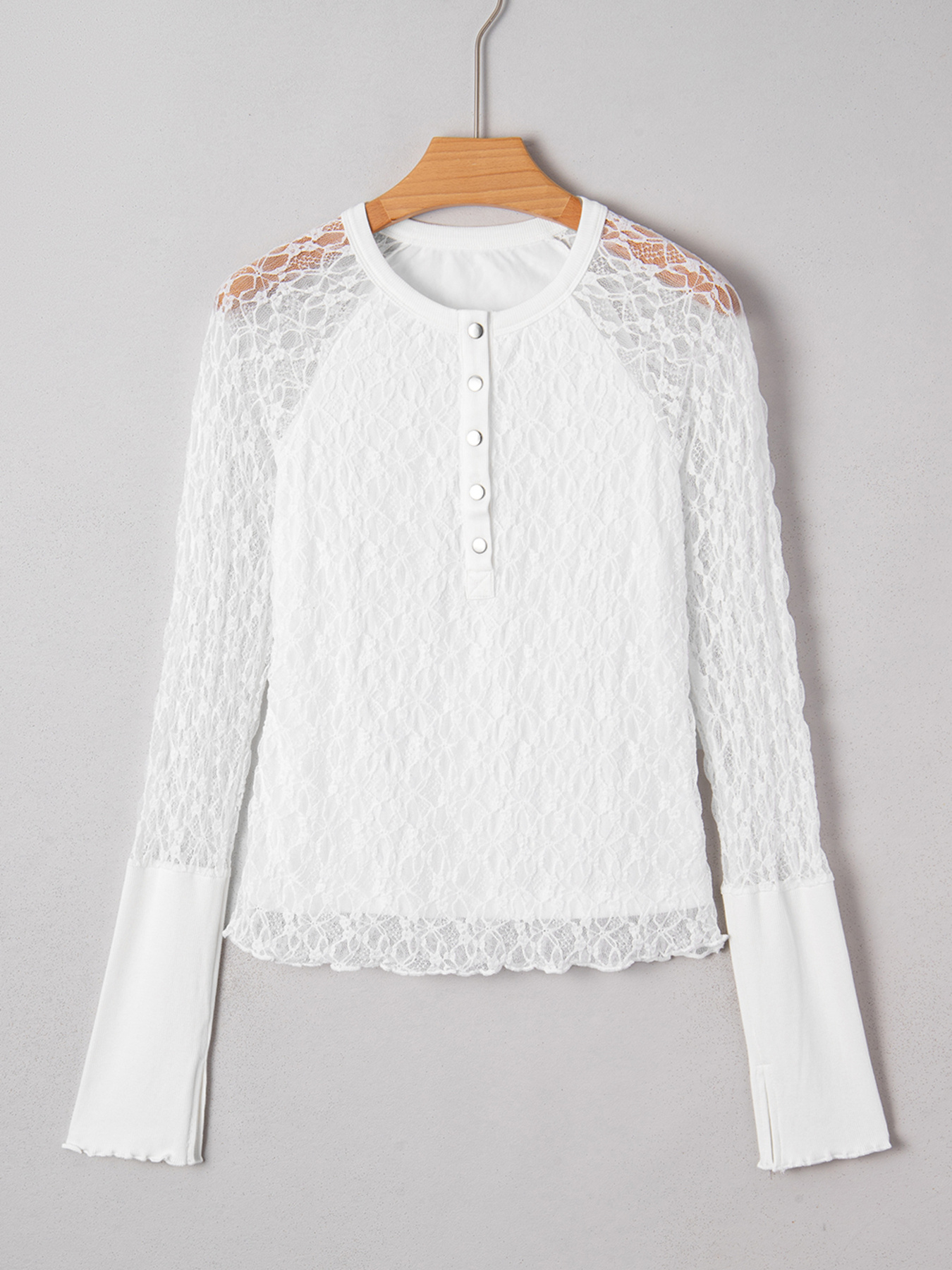 Sheer Lace Long Sleeve Slim Henley Top