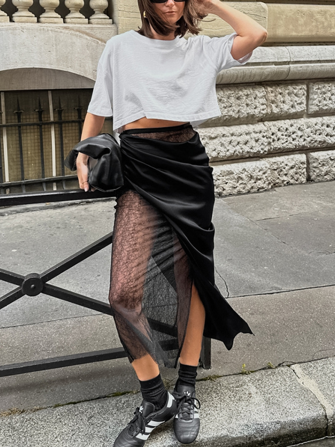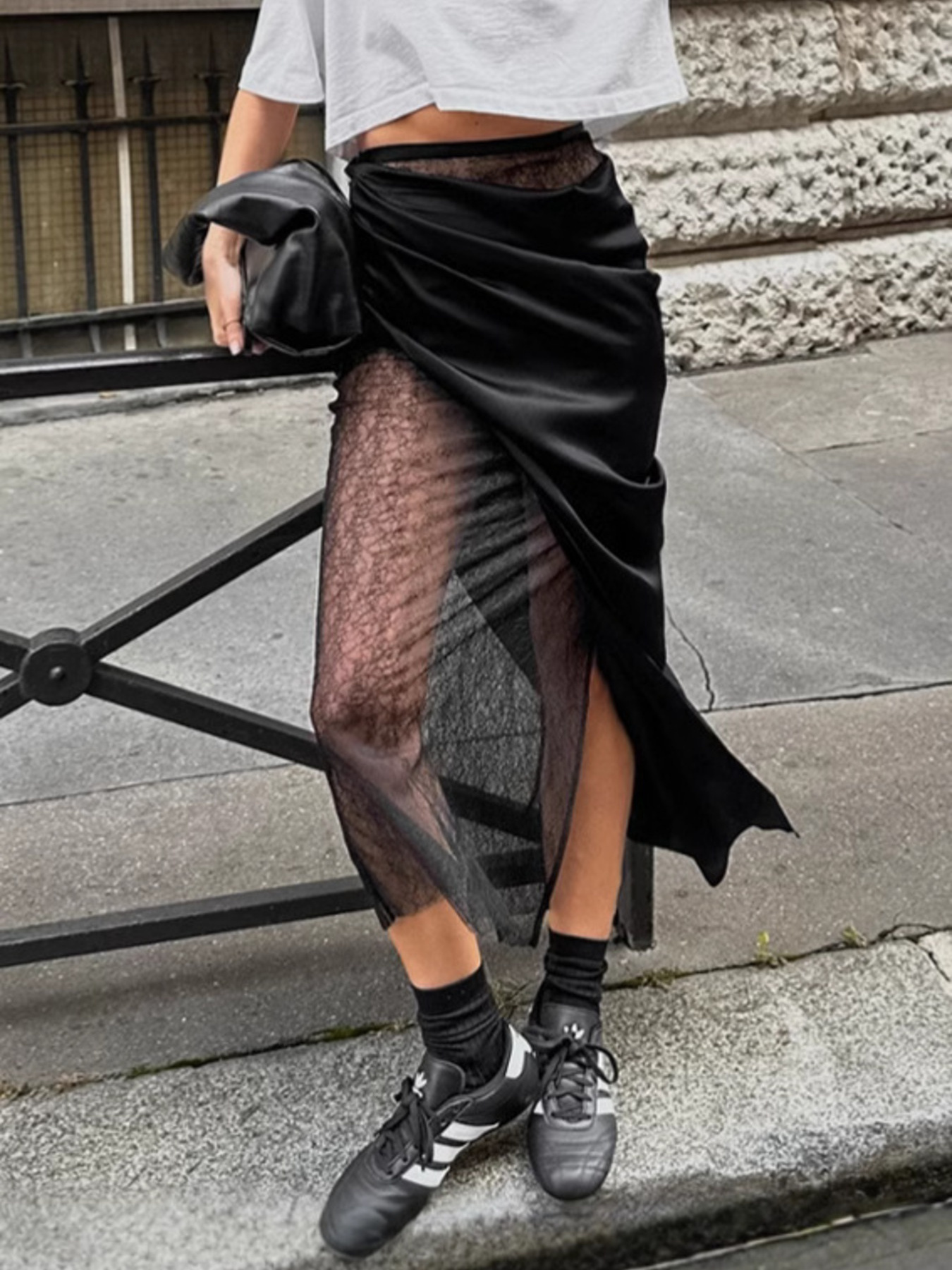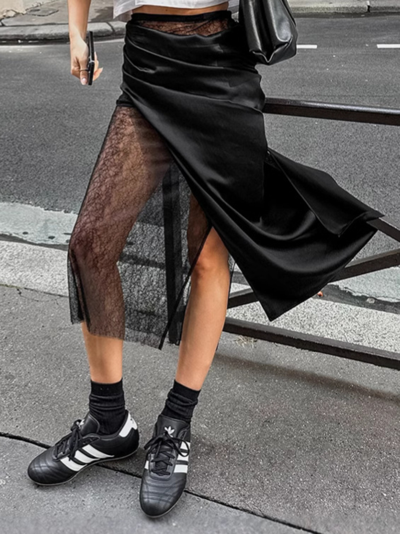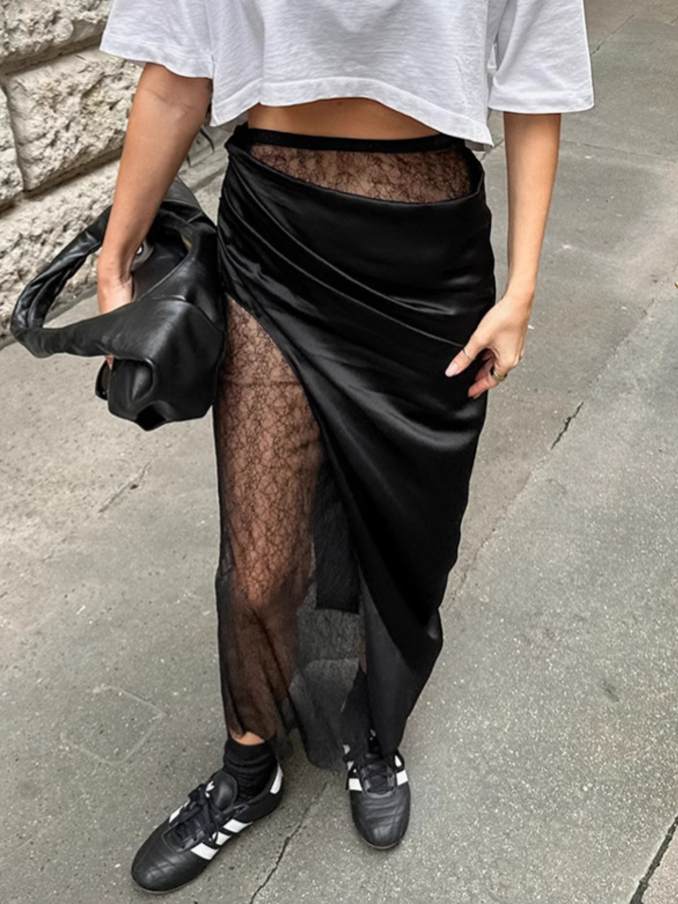 Lace Panel Midi Skirt