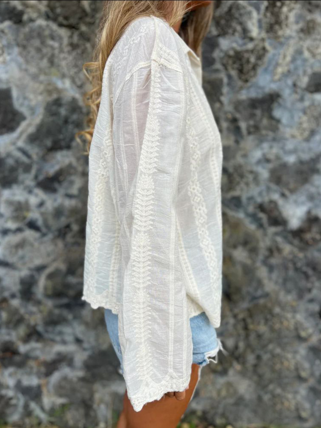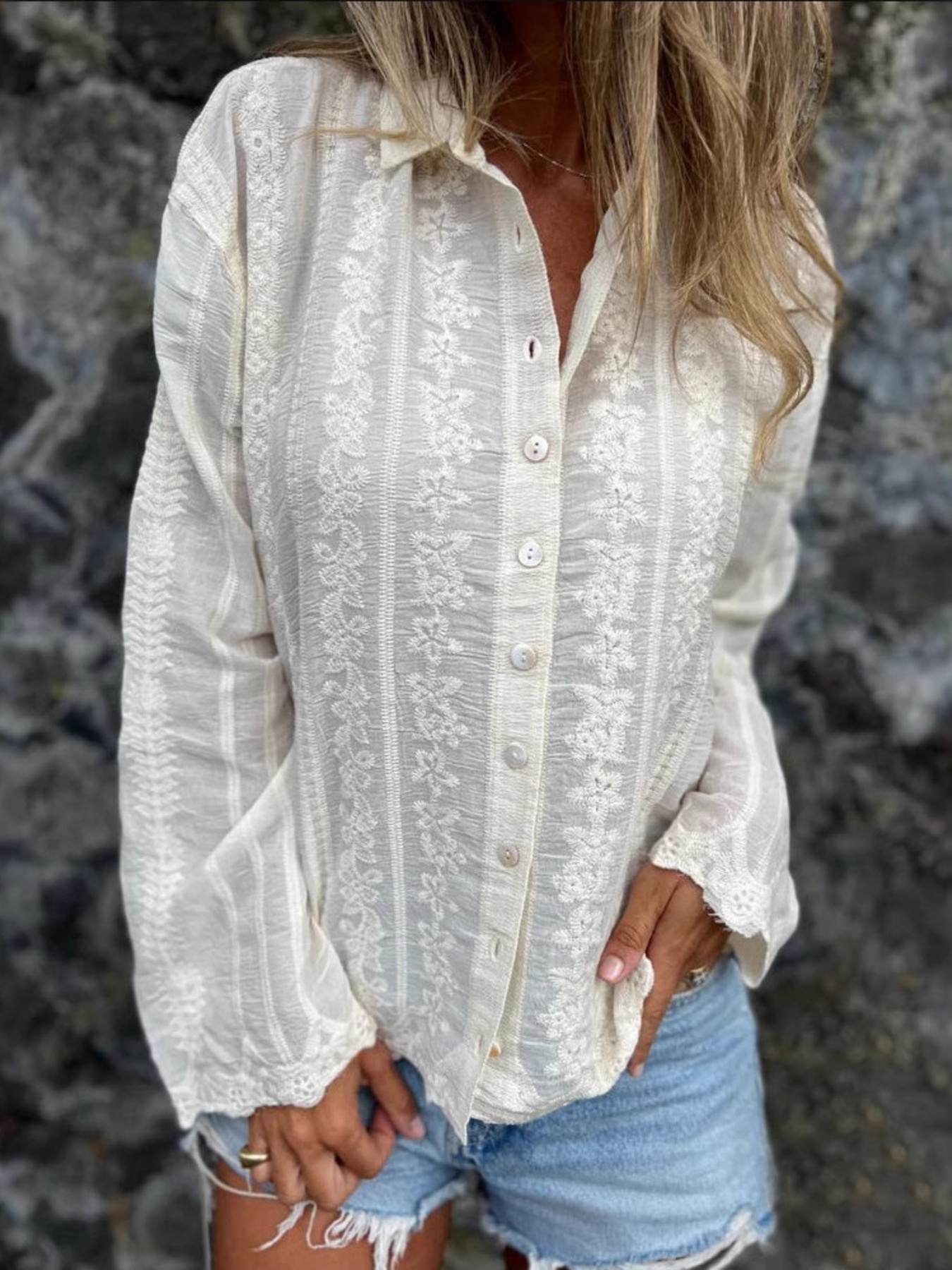 Floral Embroidered Button Down Shirt
