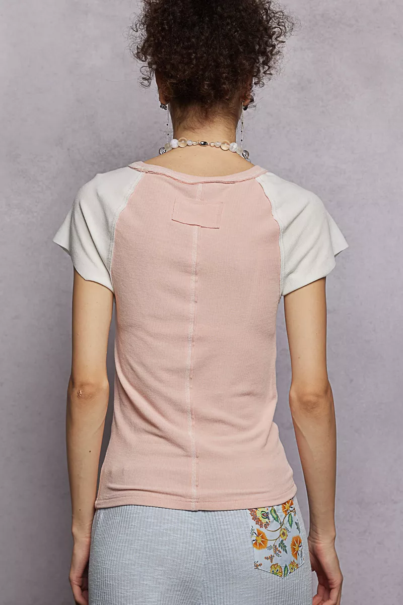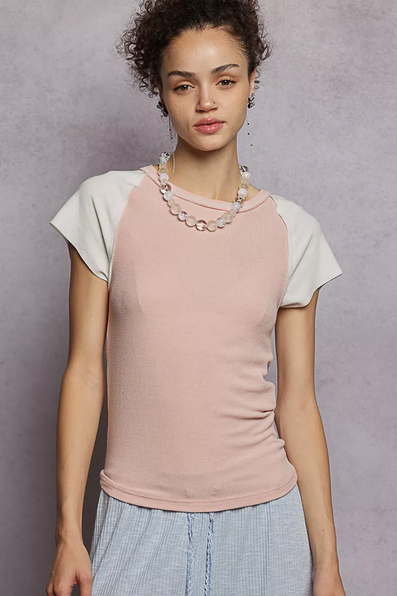Pol Round Neck Outseam Detail T-Shirt With Contrast Color Sleeves