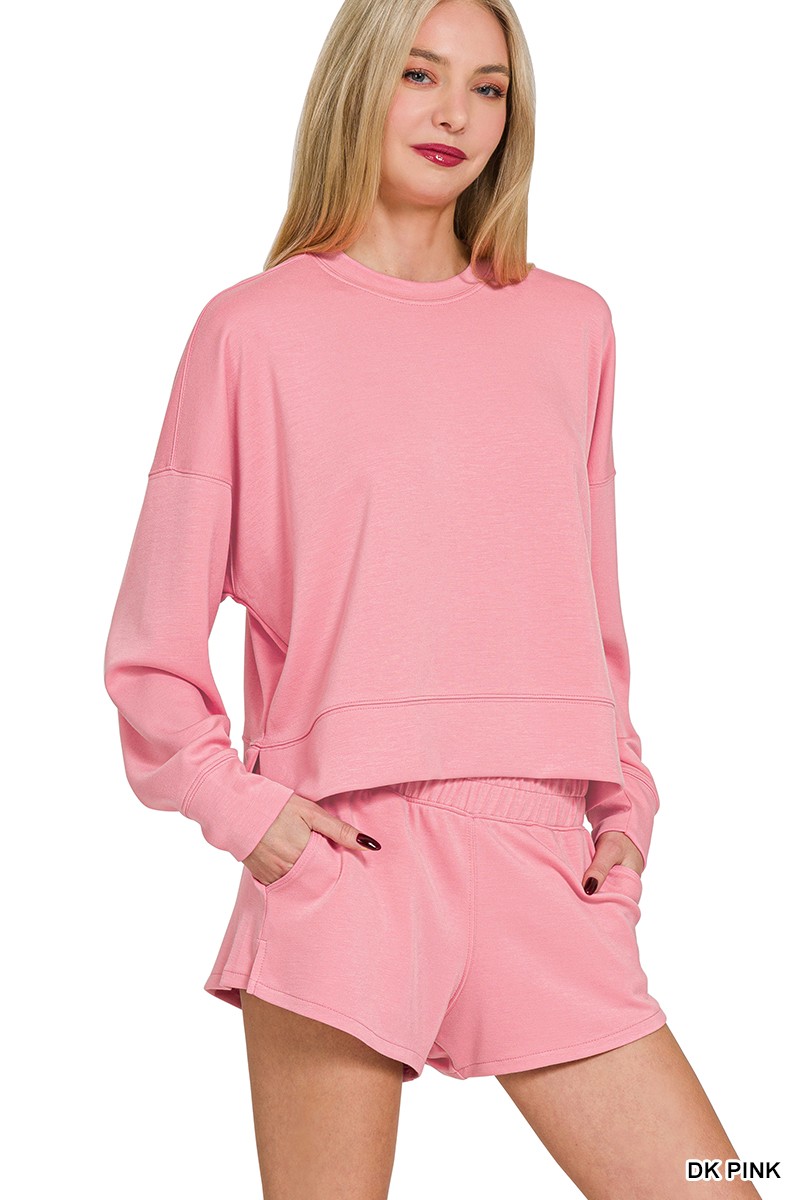 Zenana Scuba Long Sleeve Sweatshirts & Shorts Set