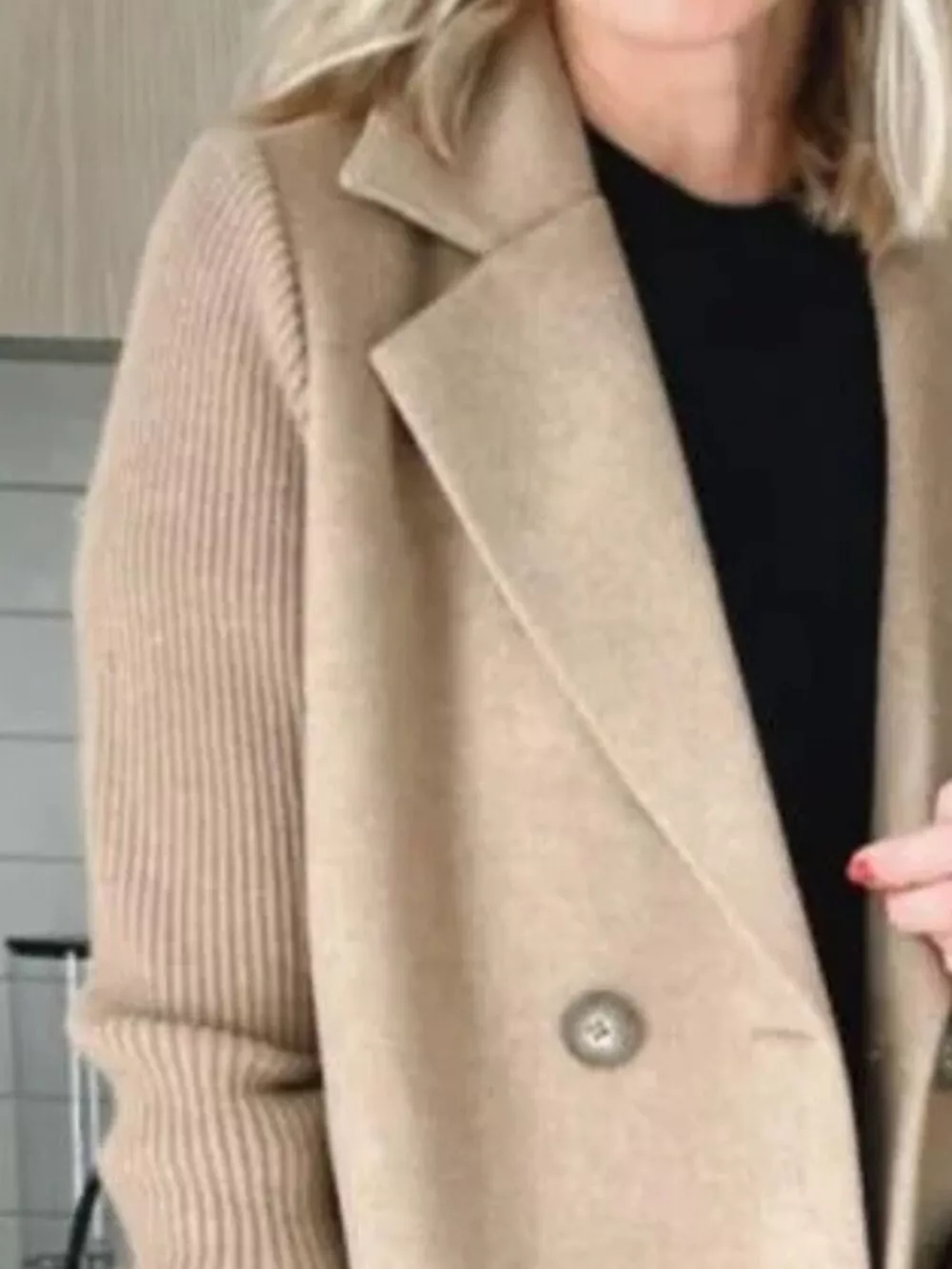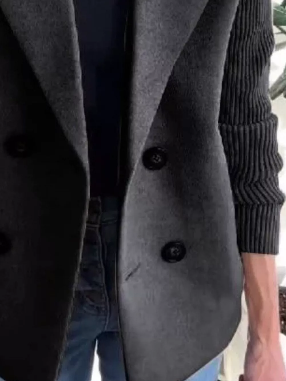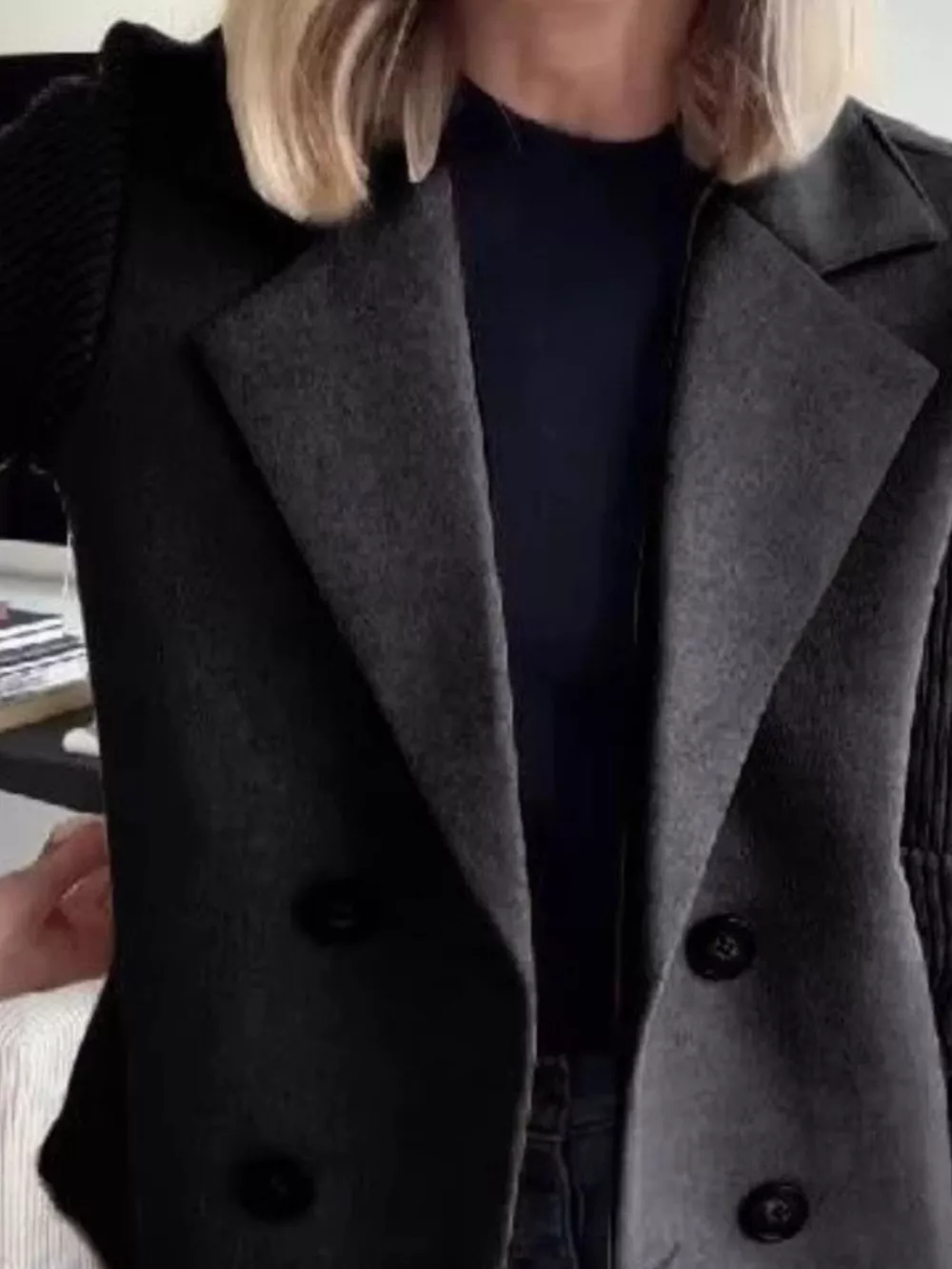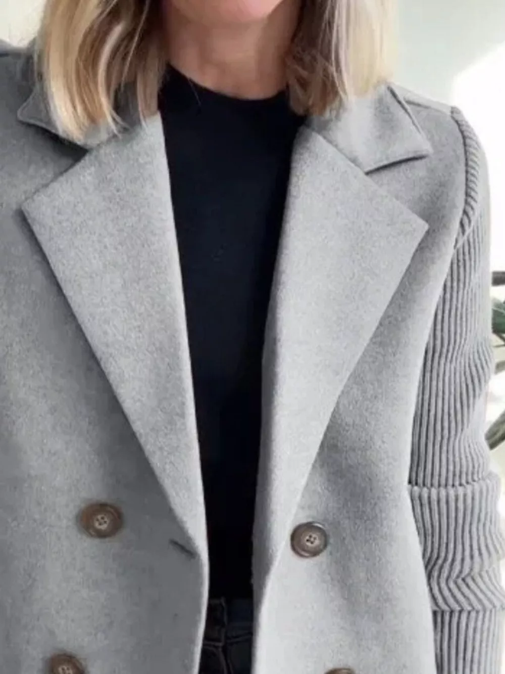 Full Size Knitted Sleeve Wool Blend Double-Breasted Blazer Plus Size