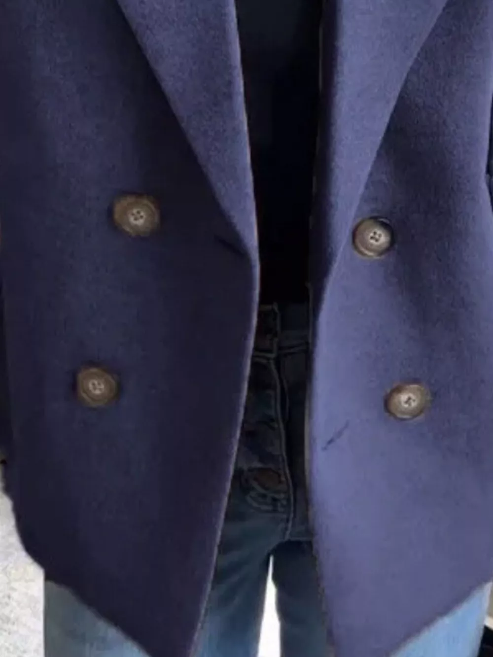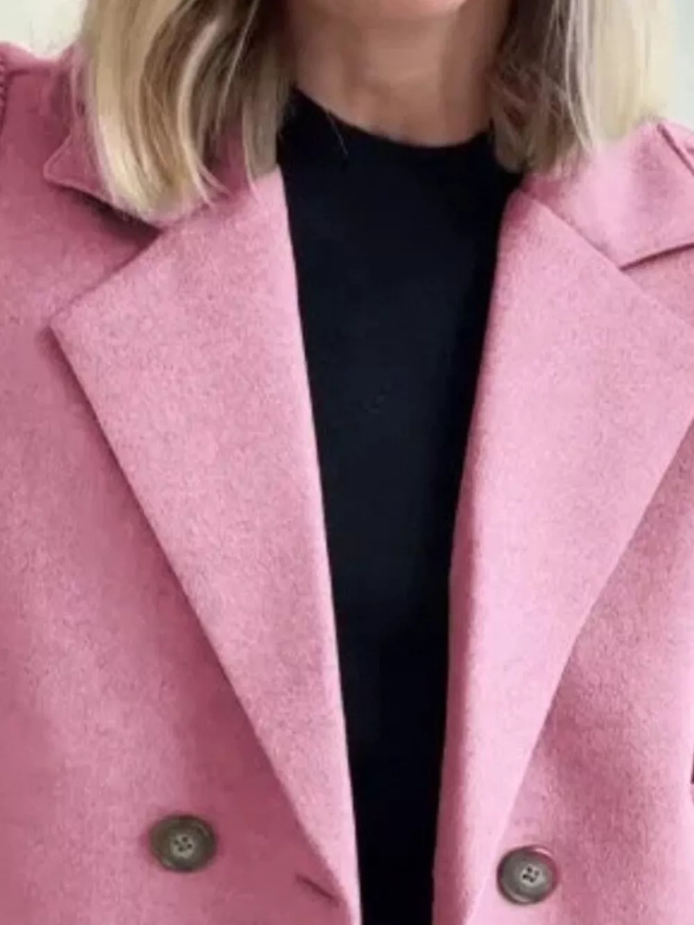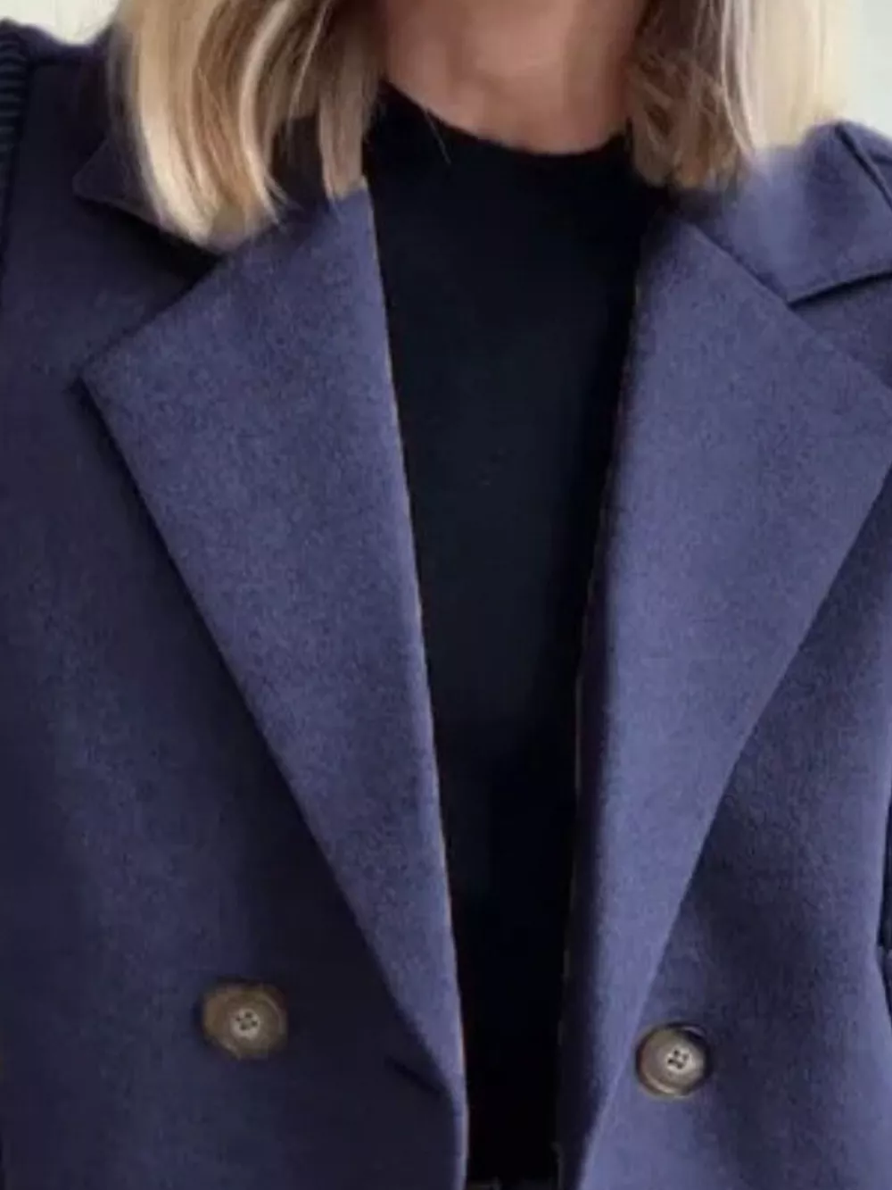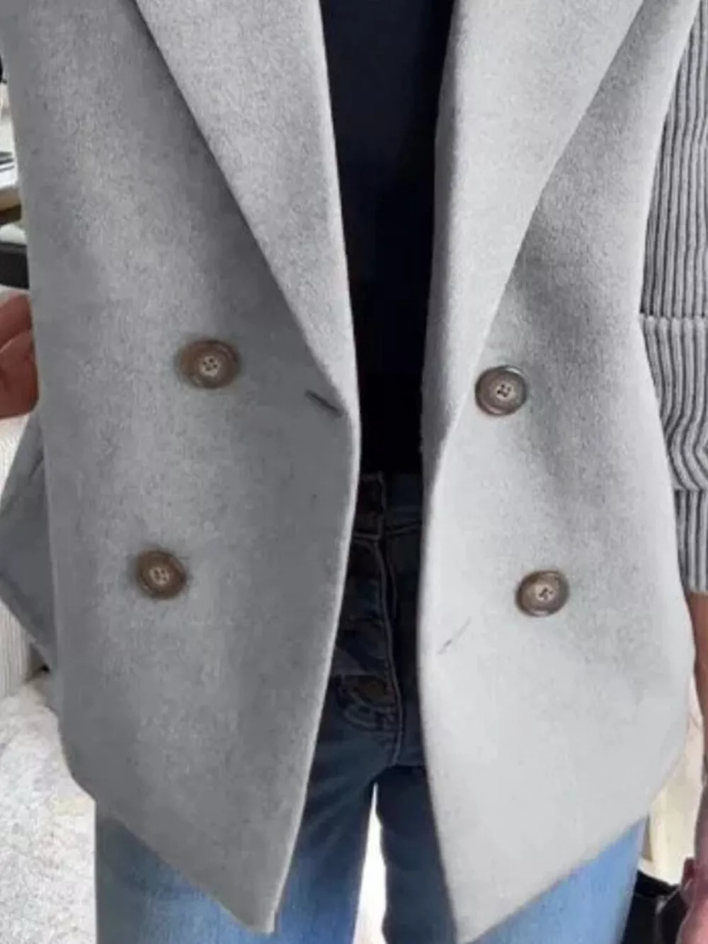 Full Size Knitted Sleeve Wool Blend Double-Breasted Blazer Plus Size