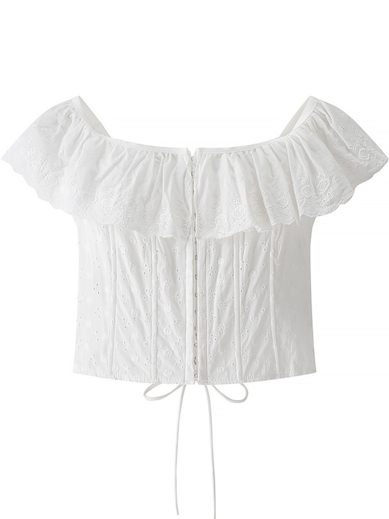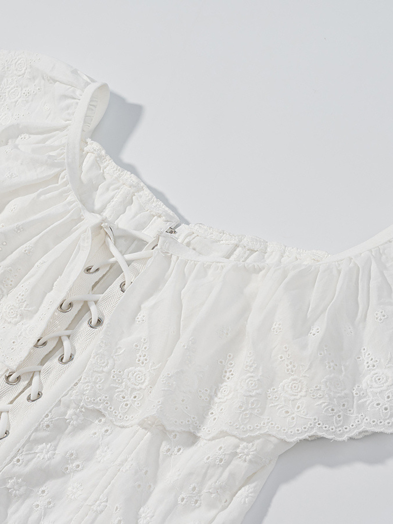 Lace Up Back Eyelet Ruffle Trim Tank
