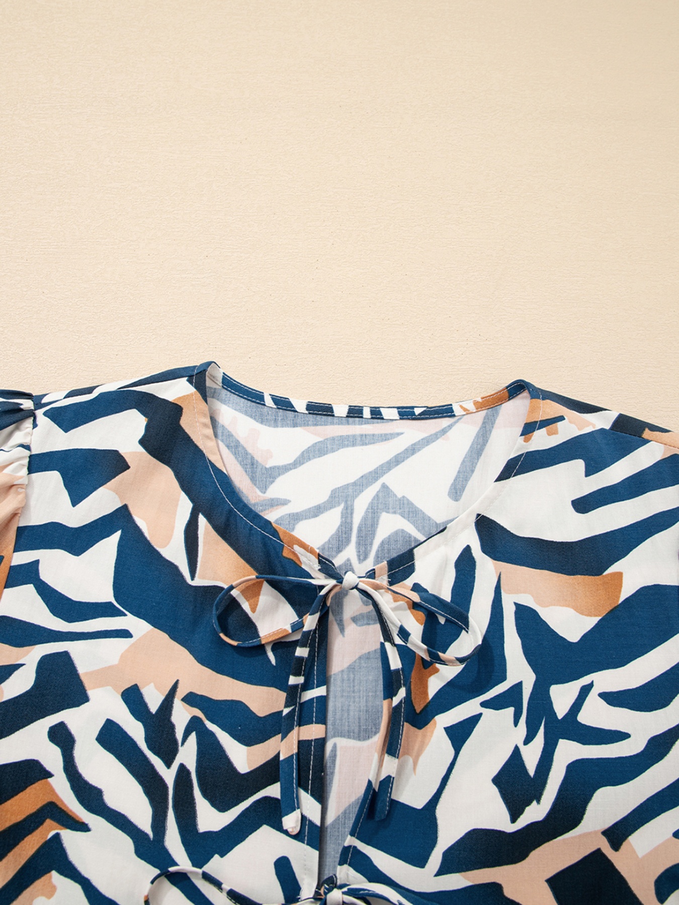 Zebra Print Tied Front Puff Sleeve Top