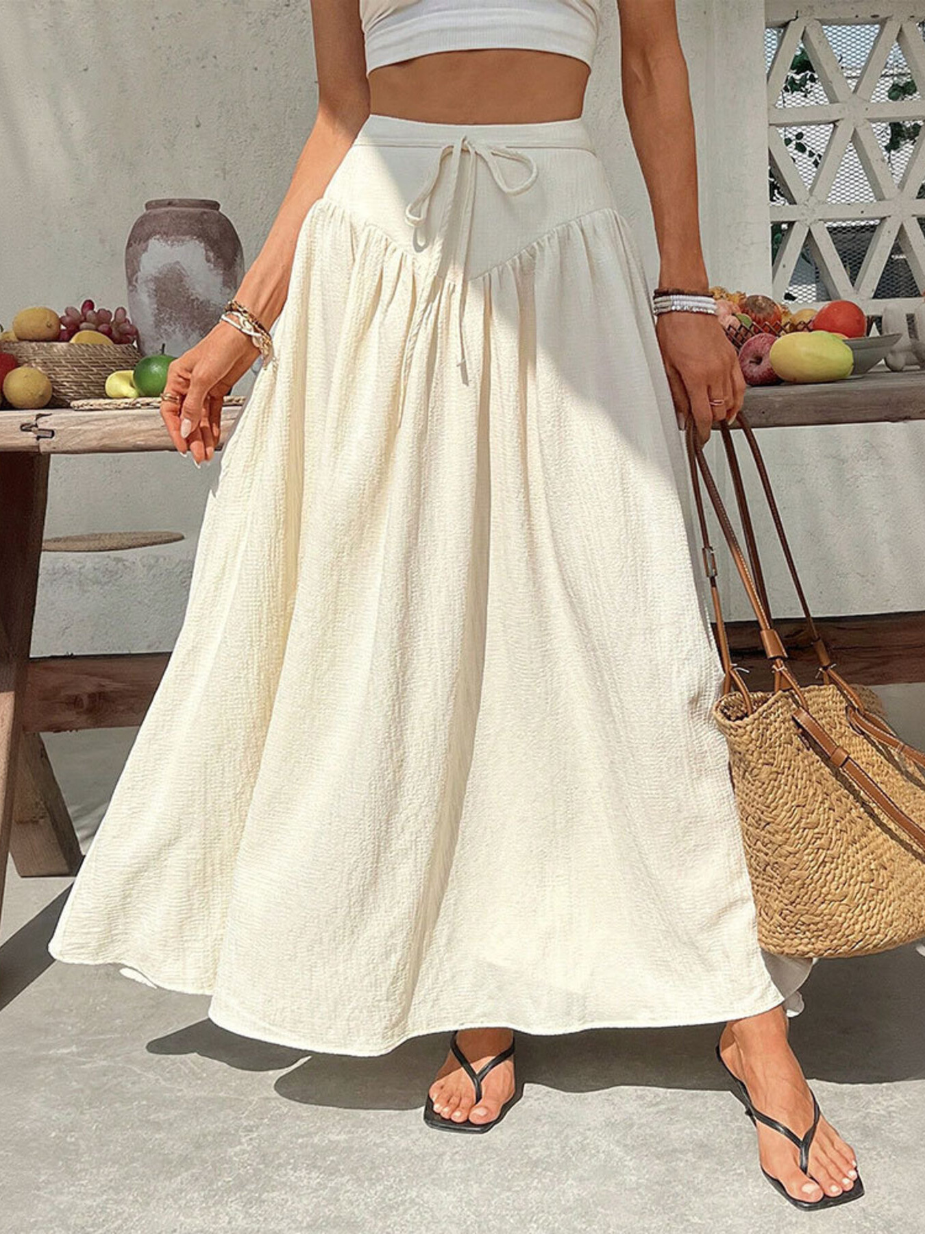 Tied Flowy Maxi Skirt
