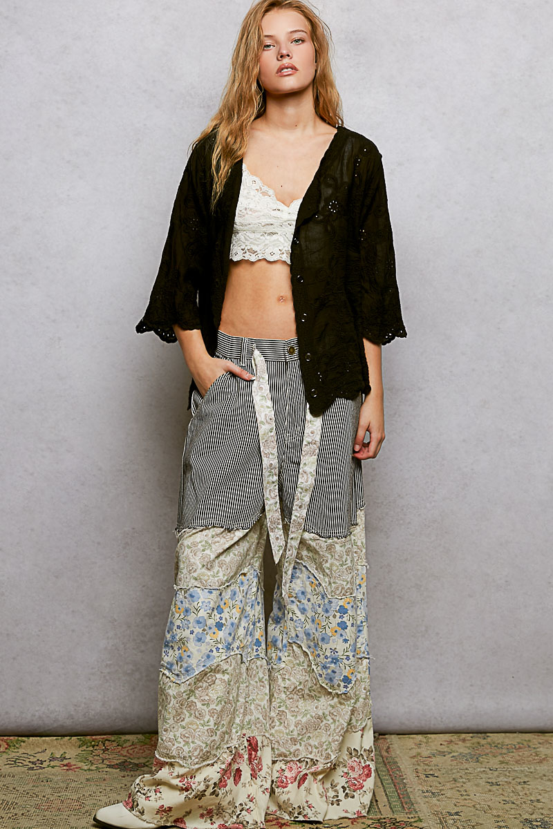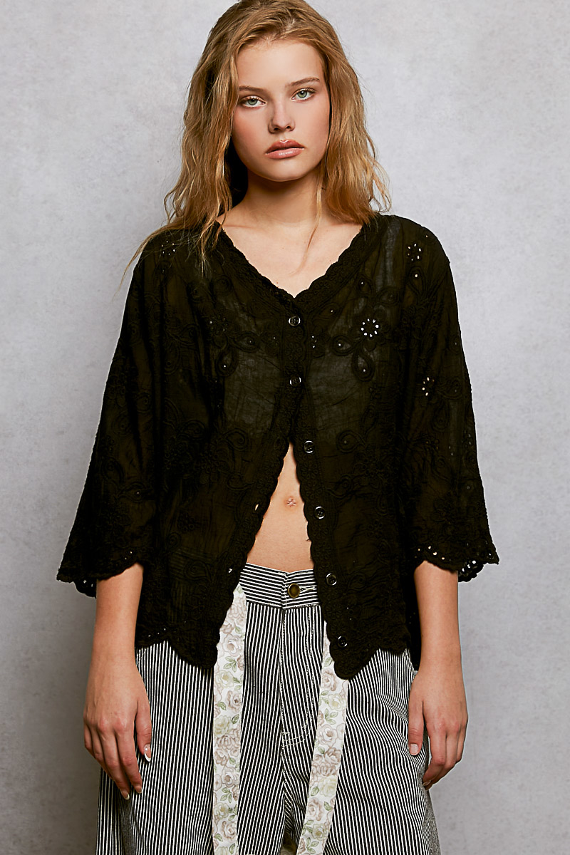 Pol Floral Eyelet V-Neck Salloped Shirt