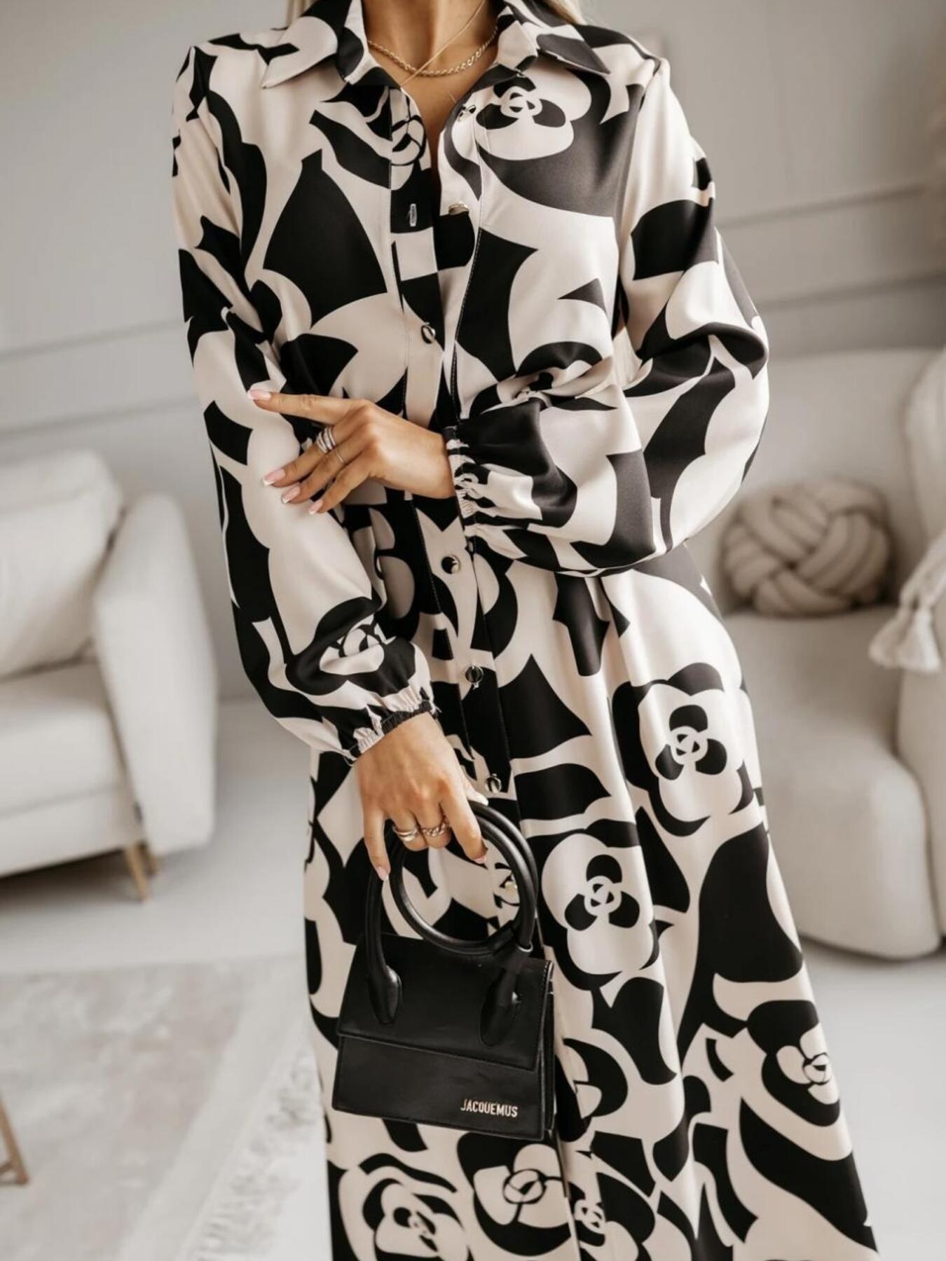 Printed Button Front Maxi Shirt Dress