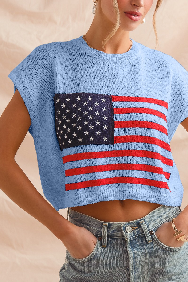 So Me Fourth Of July American Flag Boxy Fit Sweater Top