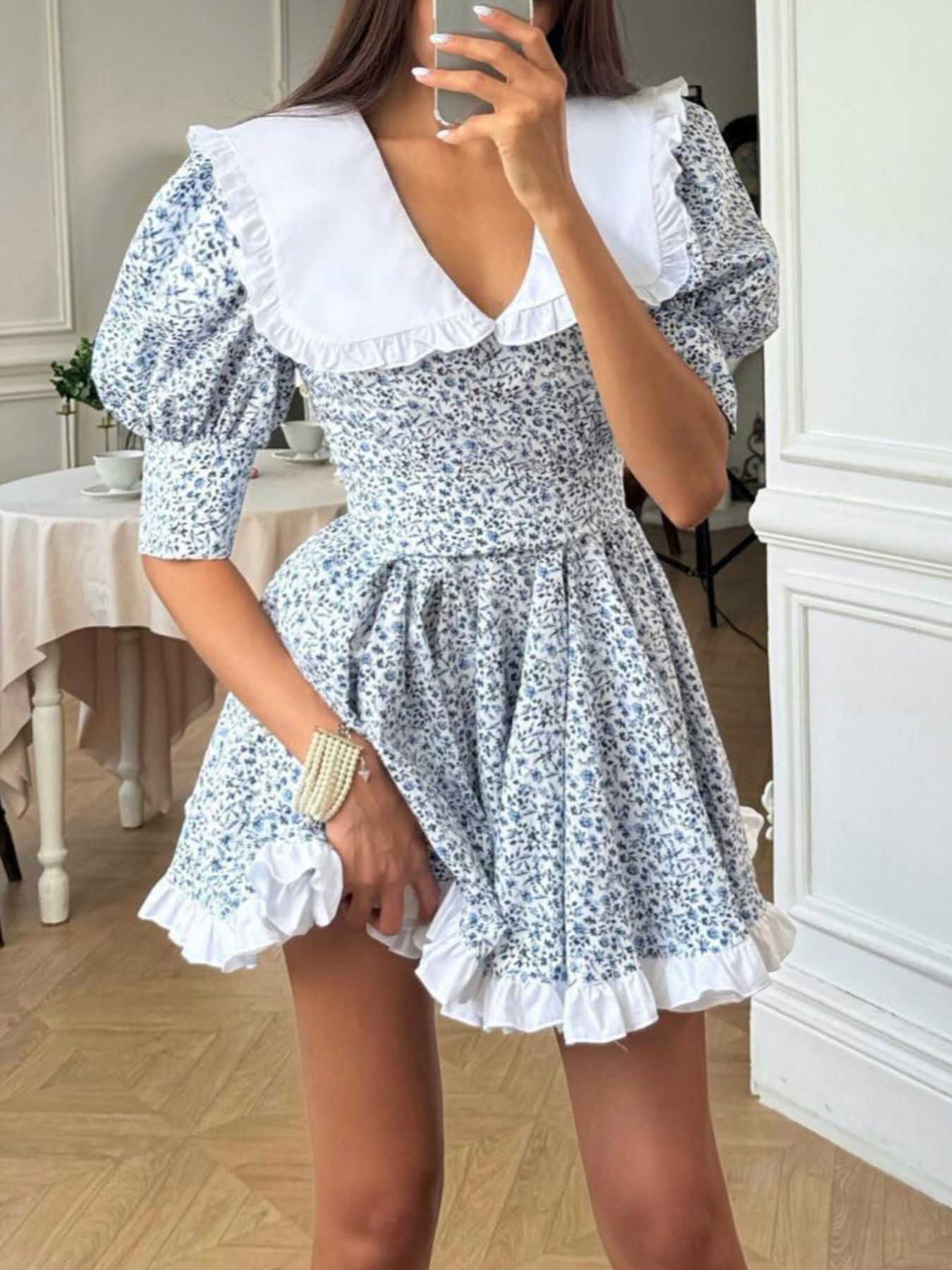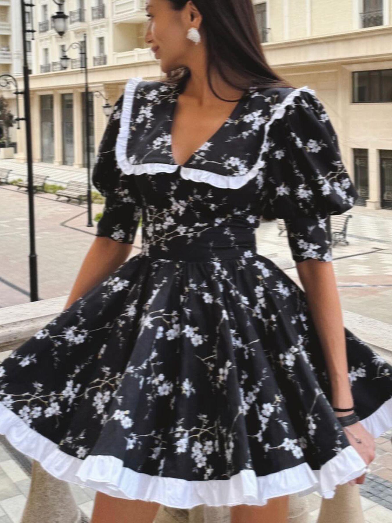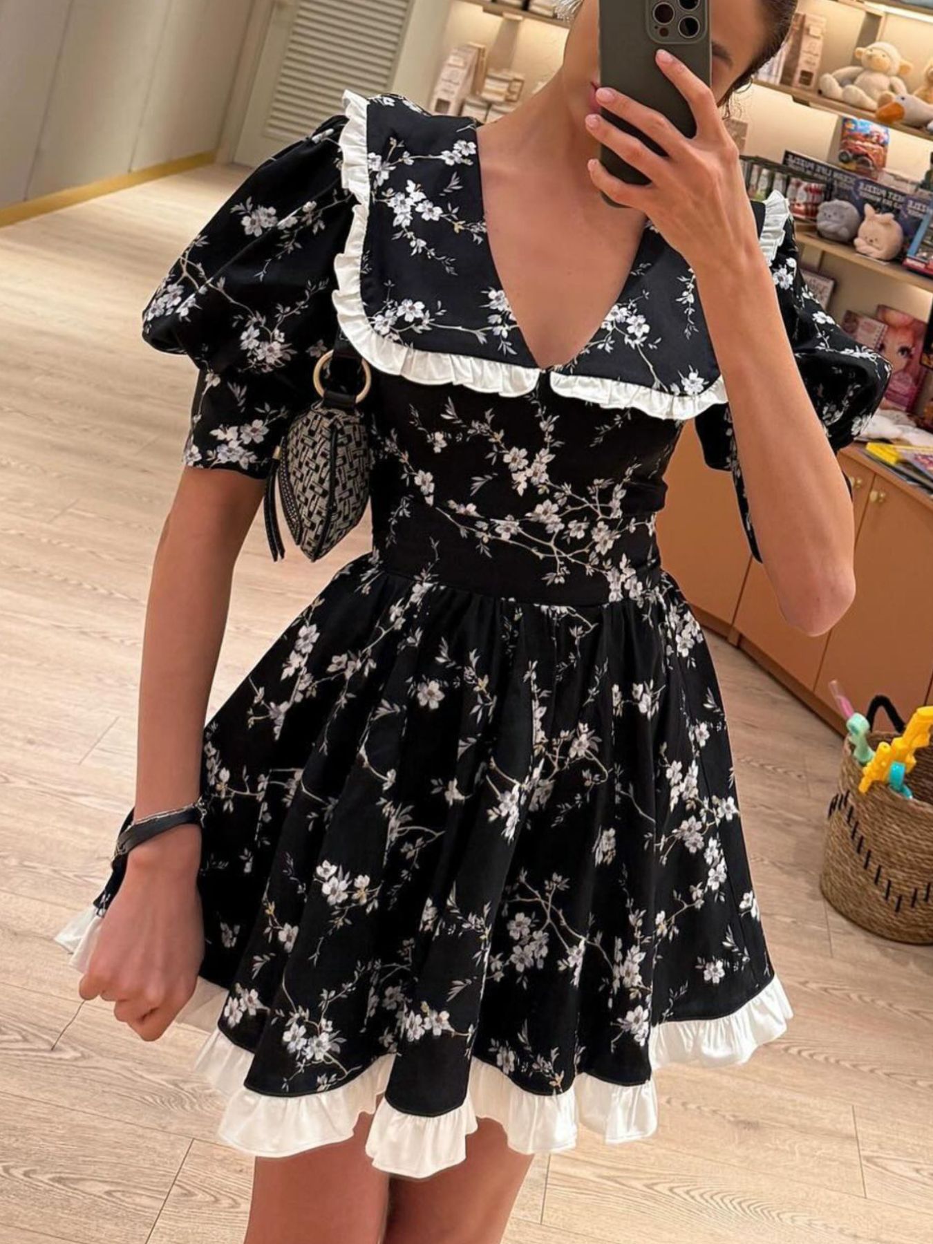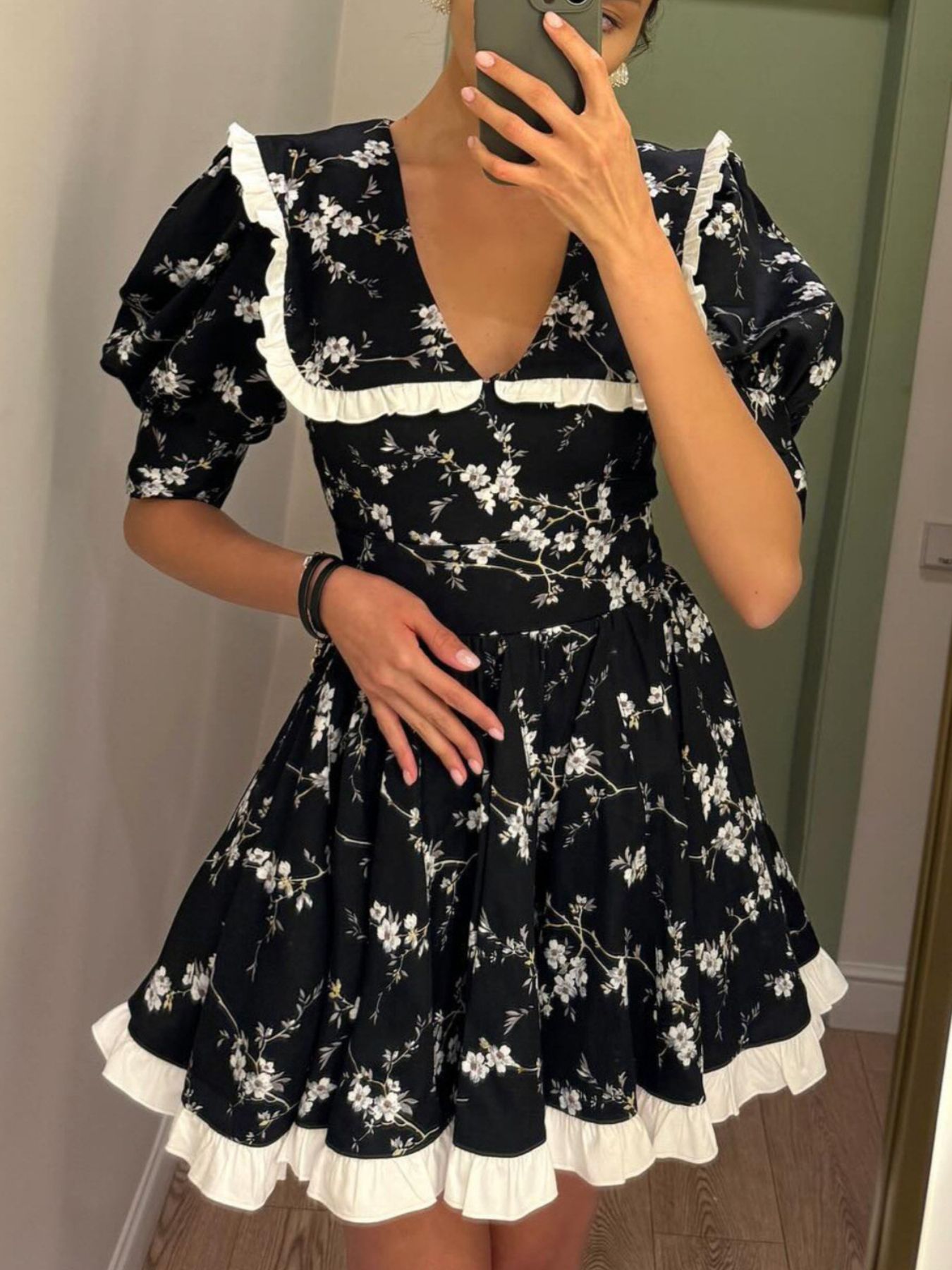 Floral Print Puff Sleeve Mini Dress