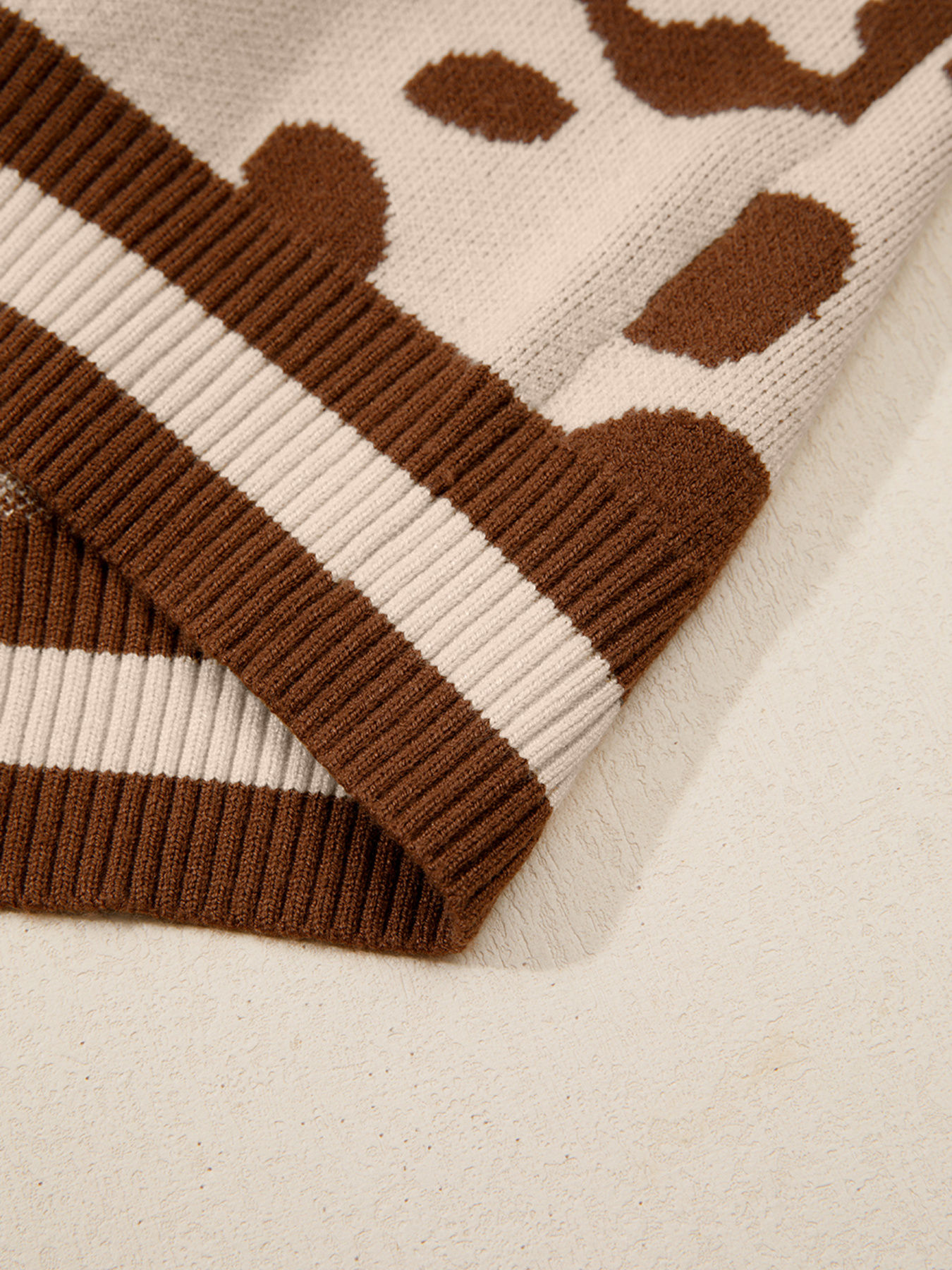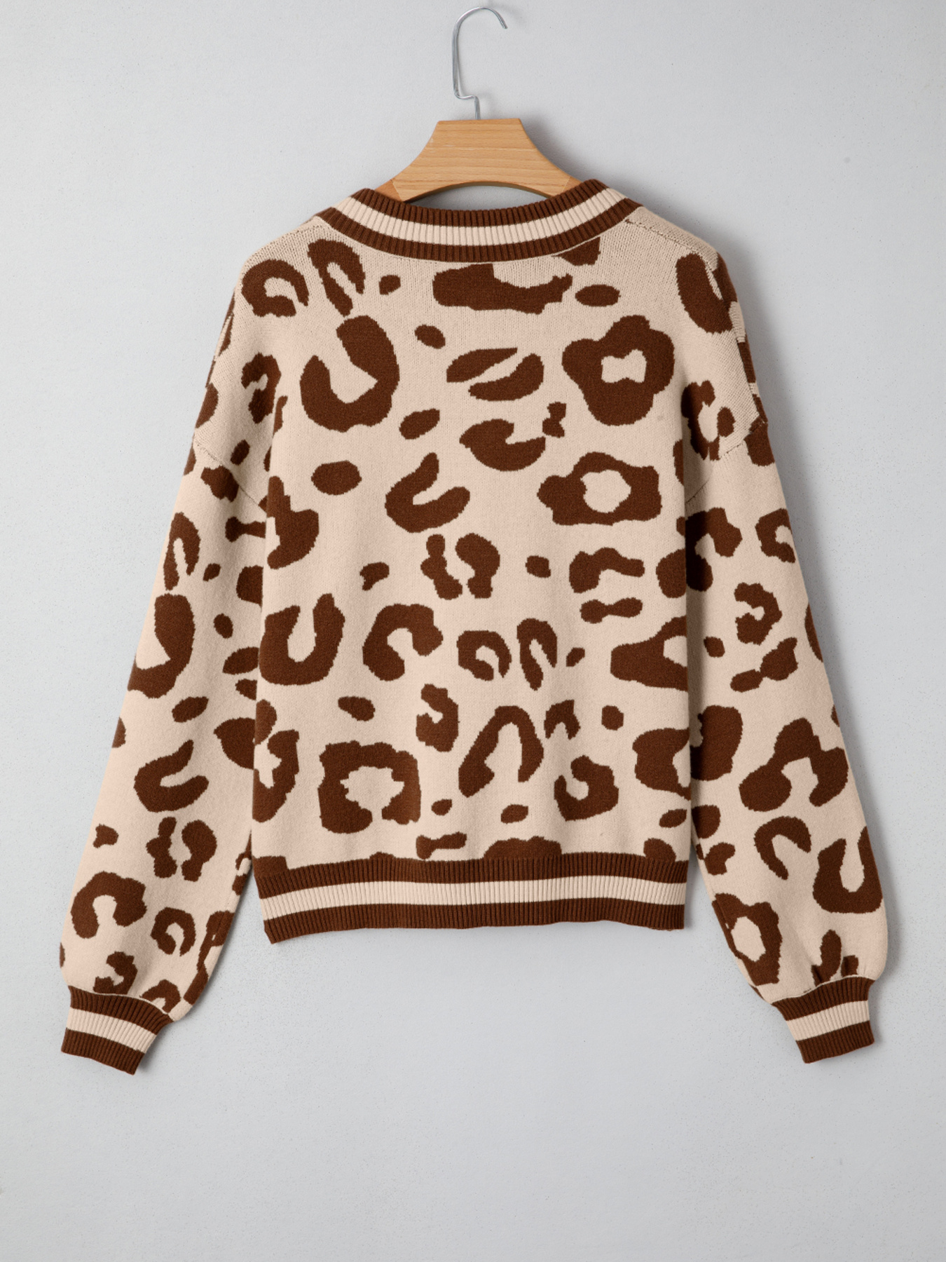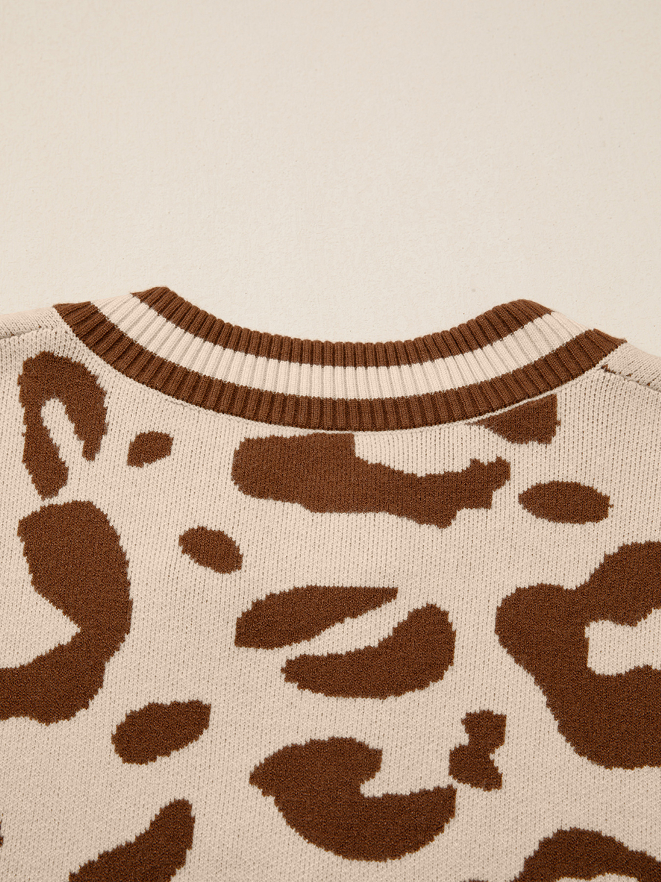 Leopard Knit Notched Casual Sweater