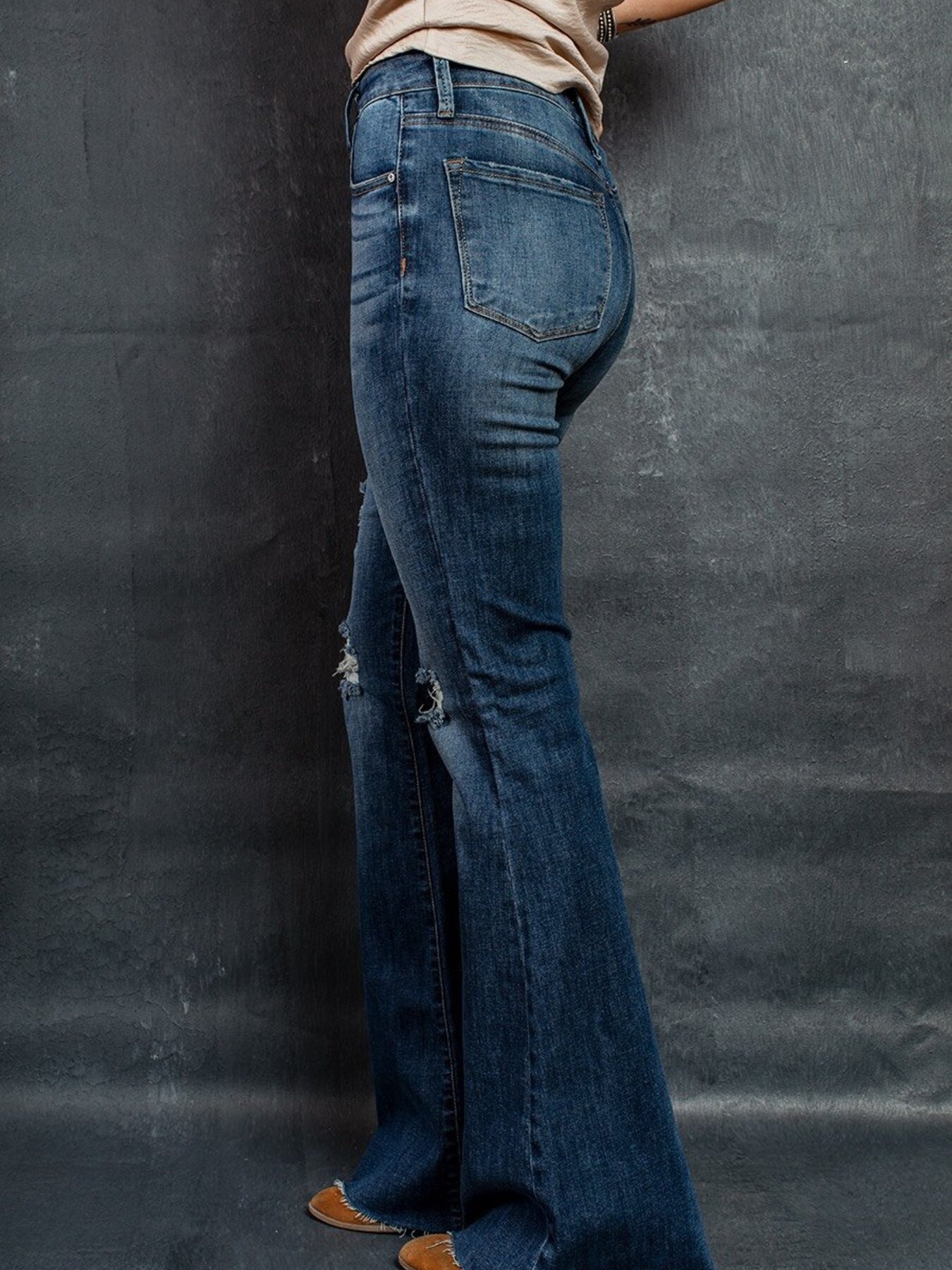 Distressed High-Waisted Flare Jeans