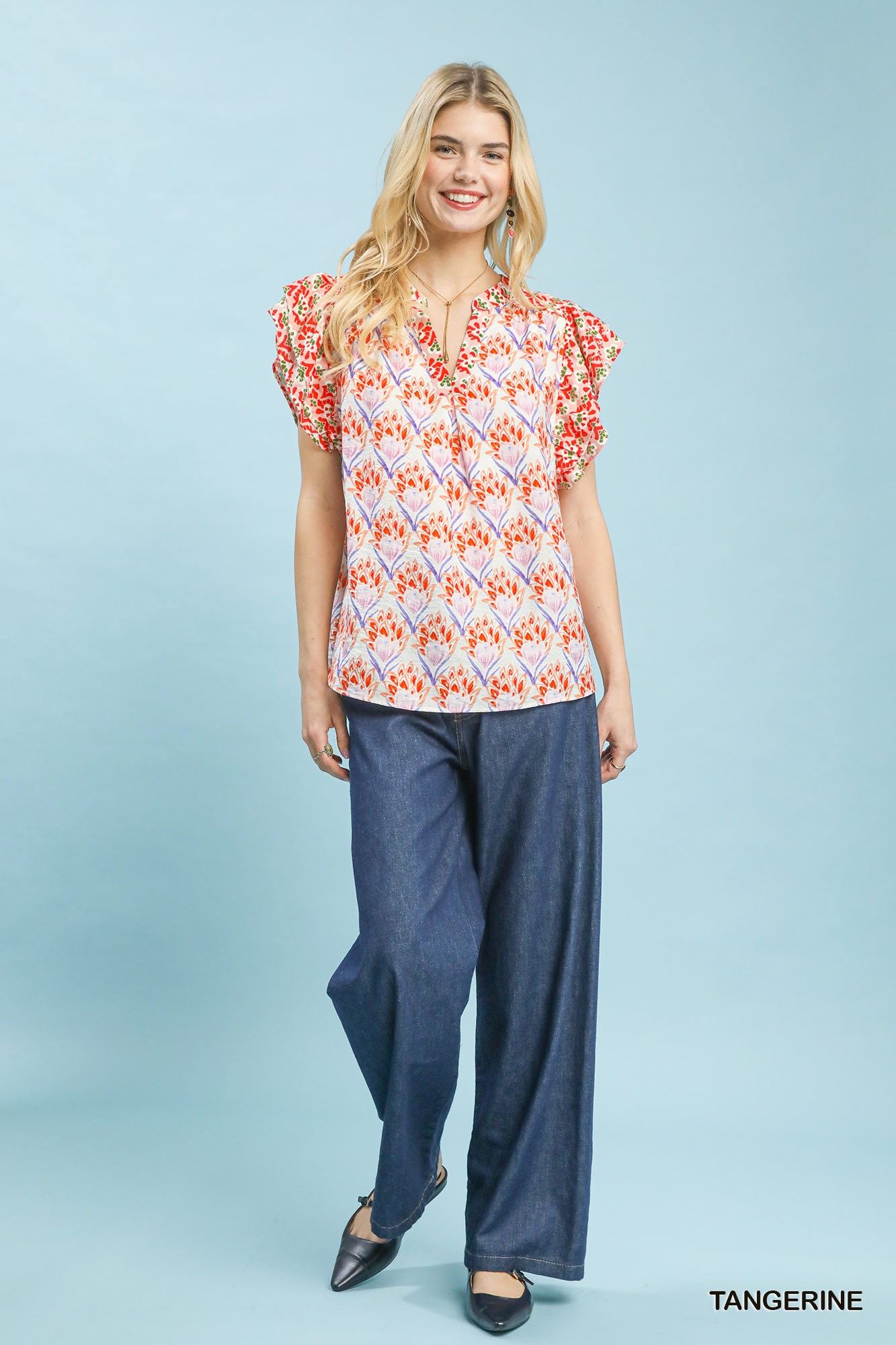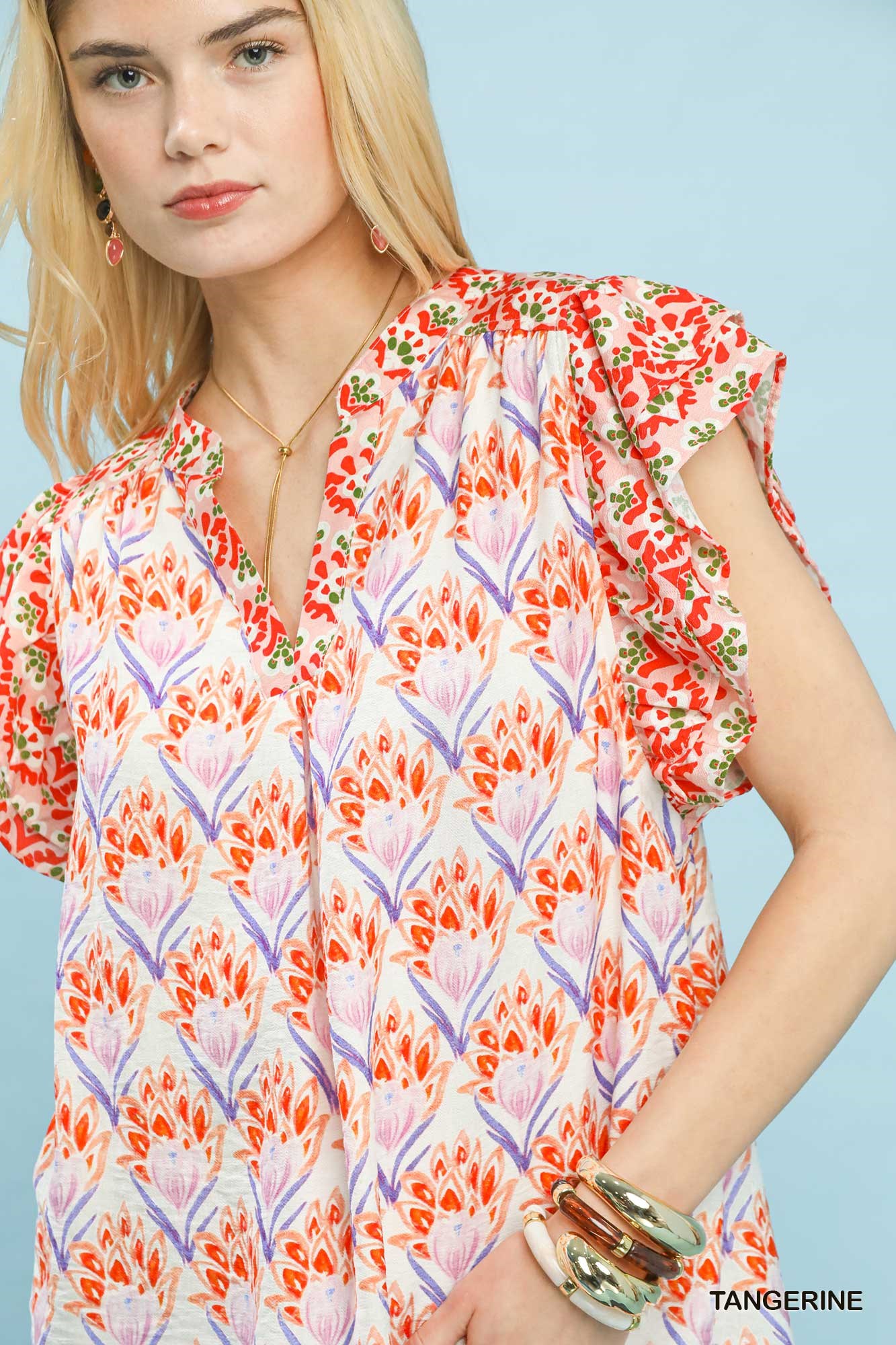 Umgee Double Frill Sleeve Floral Blouse