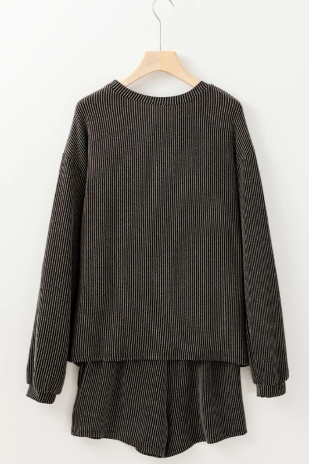 Corded Checkerboard Baseball Graphic Long Sleeve Top And Shorts Set