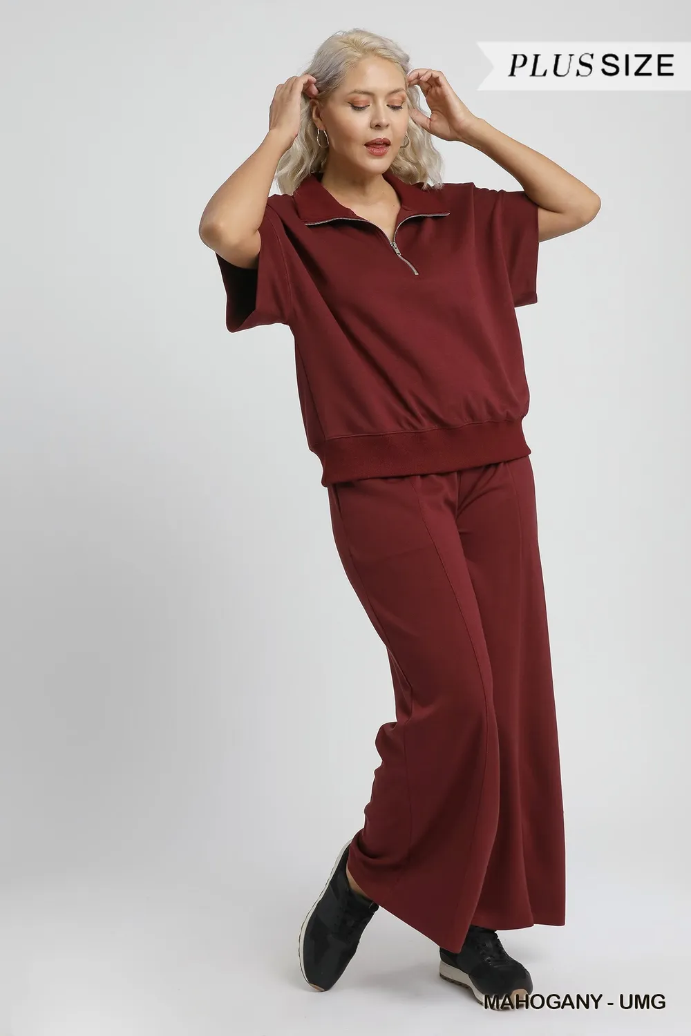 Umgee Full Size Half-Zip Short Sleeve Top Plus Size
