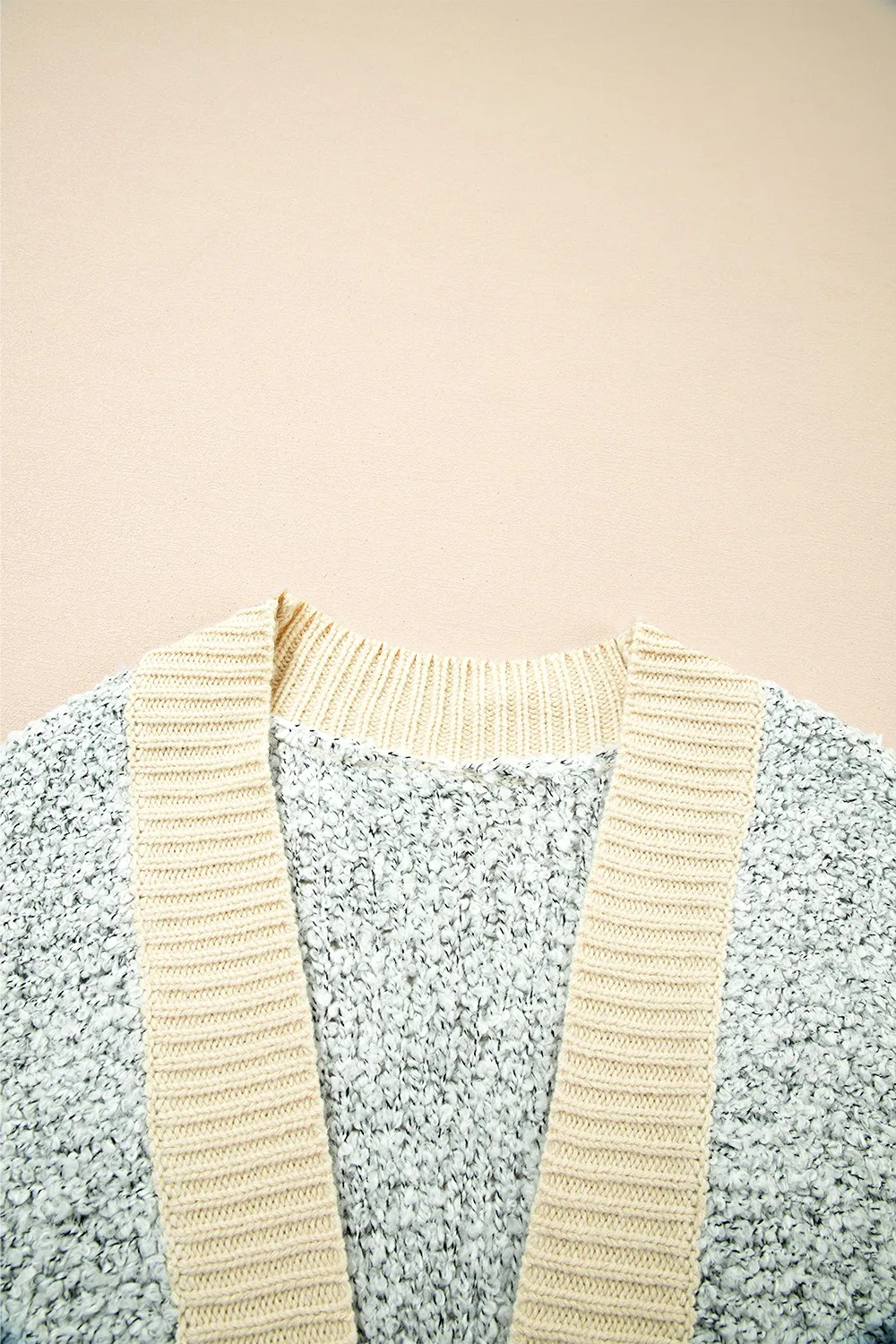 Color Block Side Pockets Open Front Cardigan