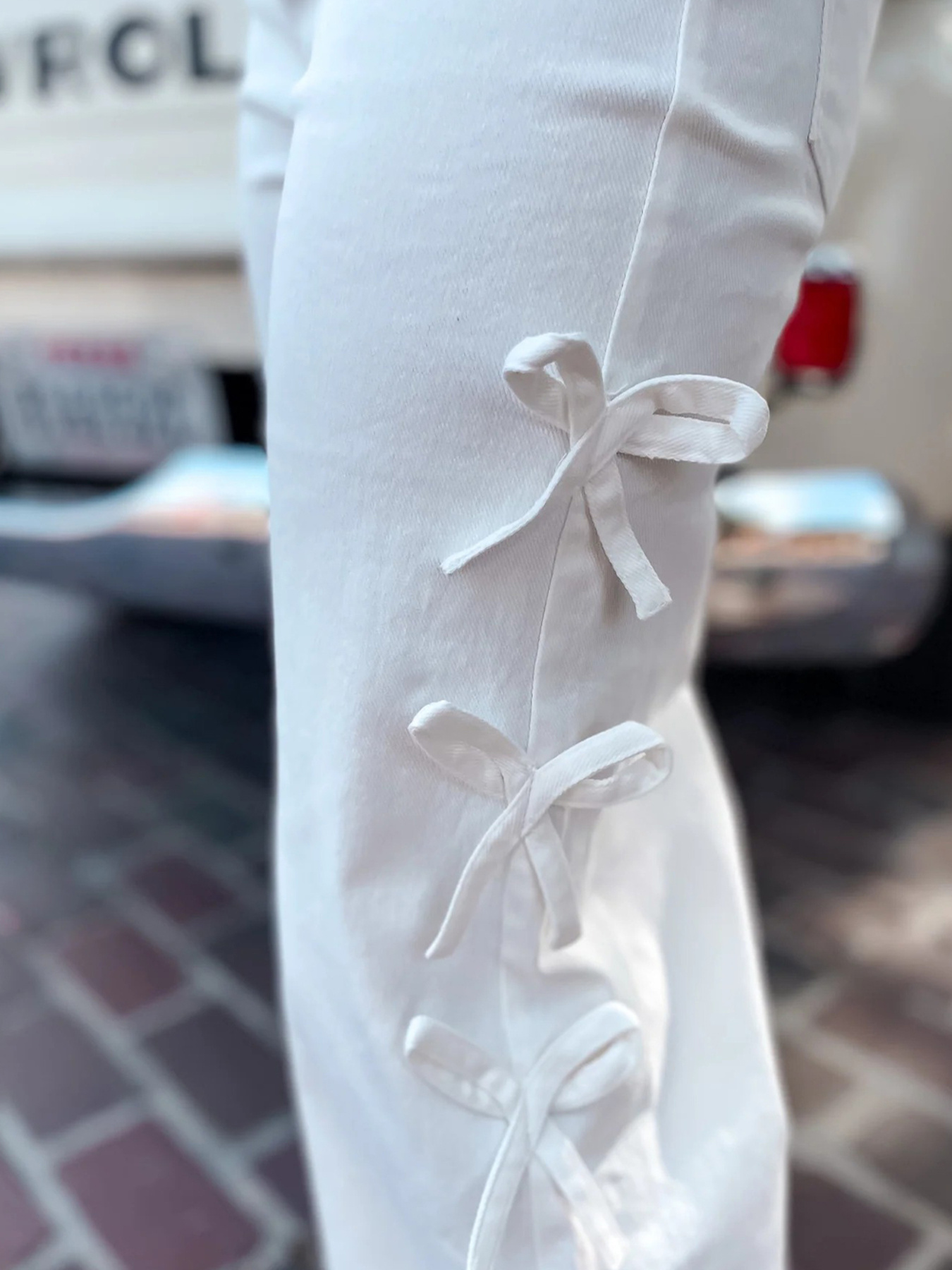 Bow-Accented Wide-Leg Pants