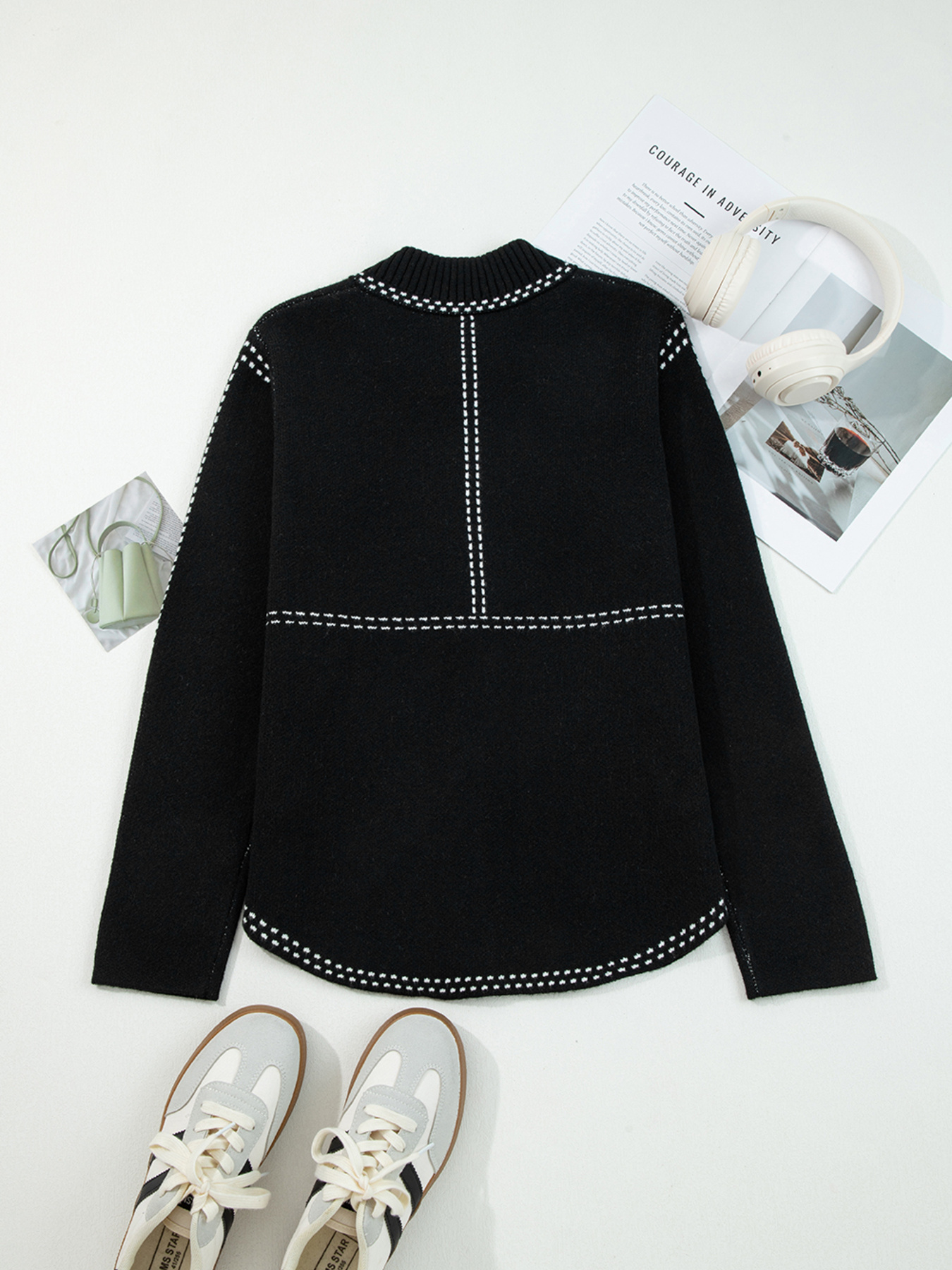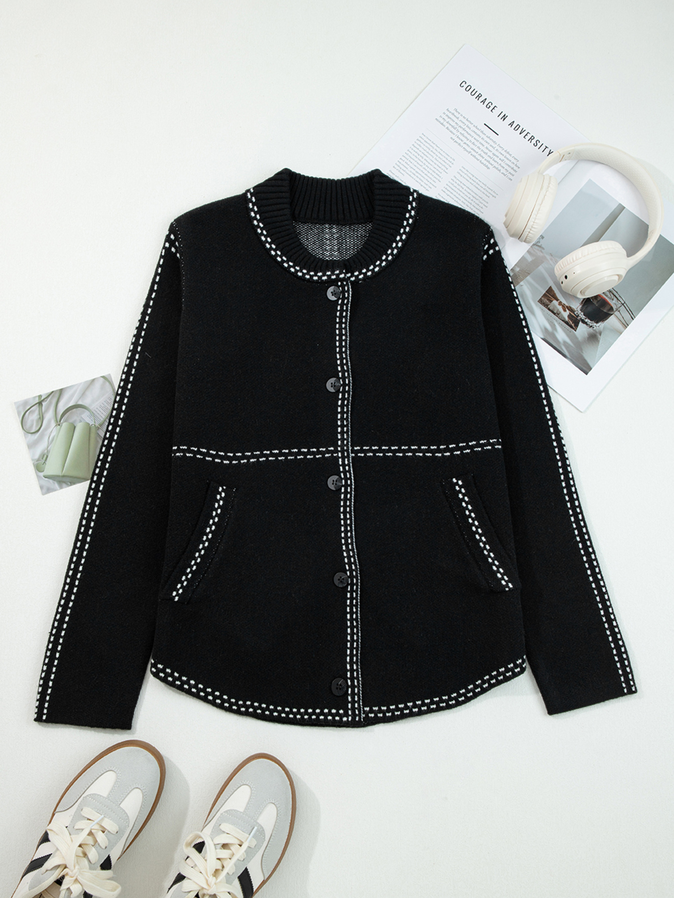 Contrast Trim Button Up Sweater Cardigan