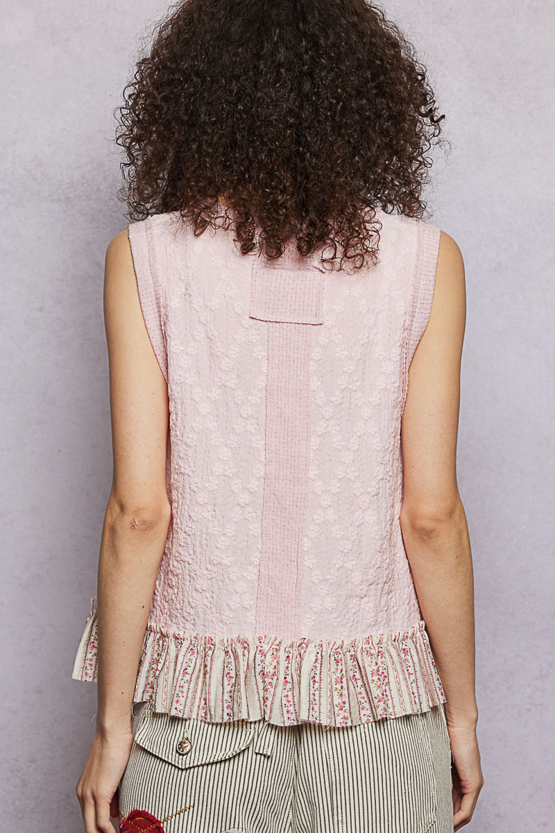 Pol Floral Print V-Neck Textured Tank