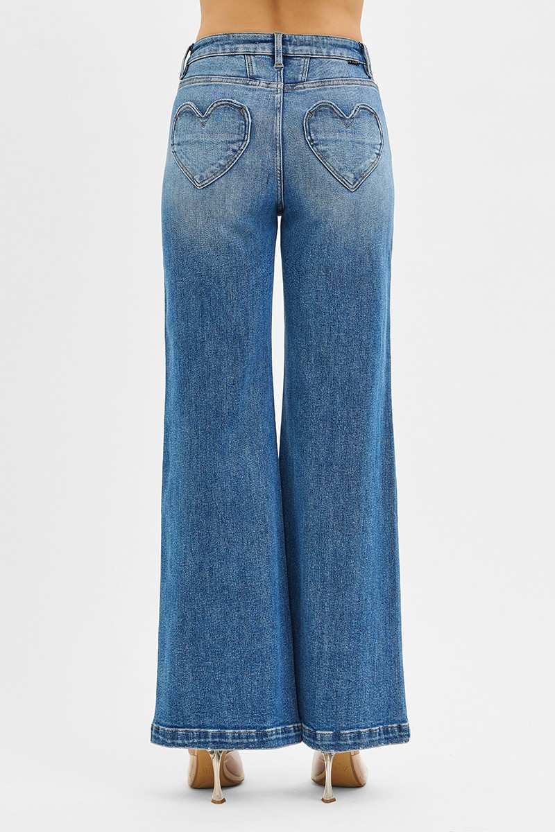Risen High Rise Wide Leg Jenas With Front Yoke And Heart Back Pocket
